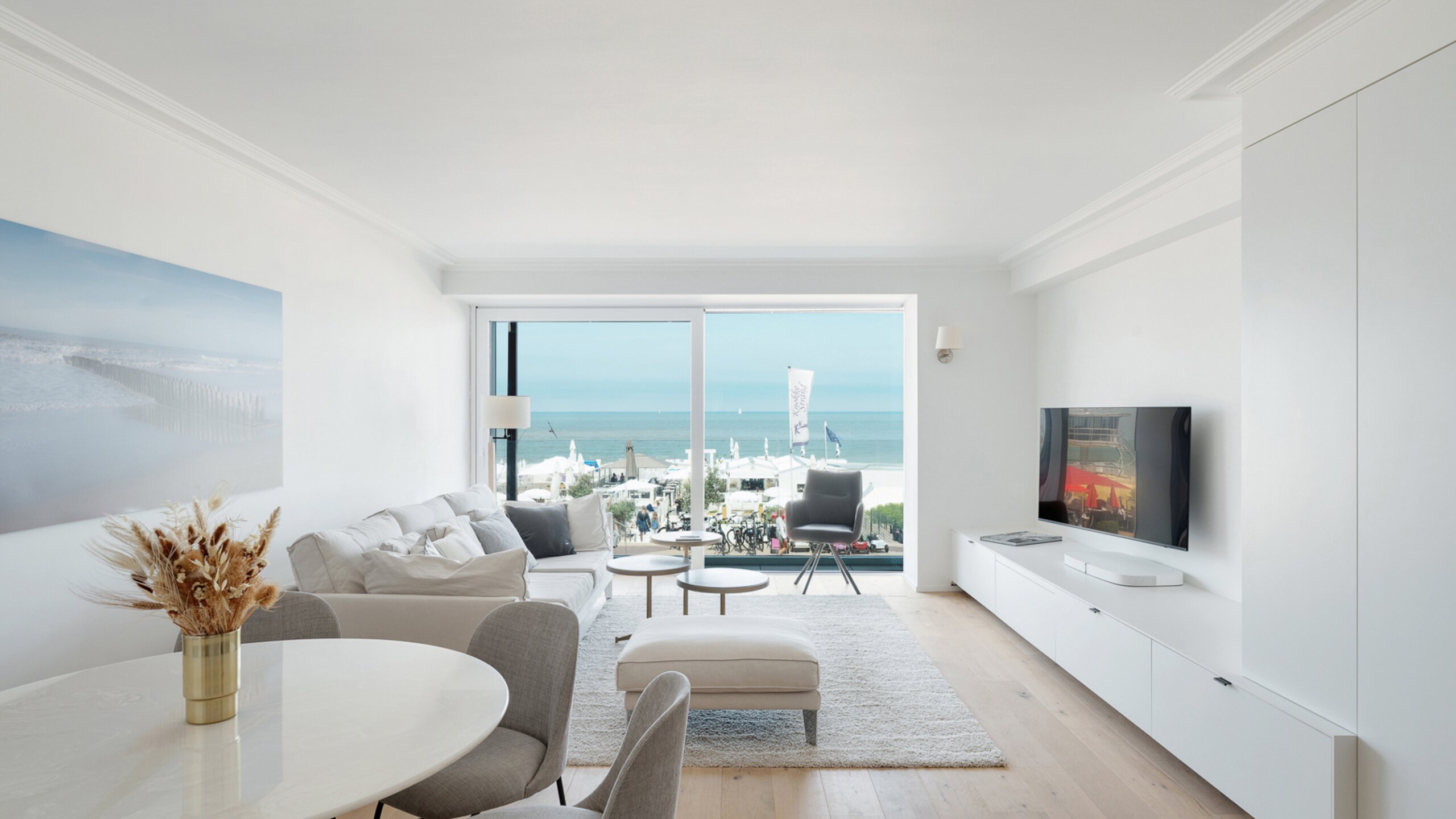 Recent vernieuwd appartement met frontaal zeezicht, uitstekend gelegen op de Zeedijk van Knokke dichtbij het Lichttorenplein. Indeling : inkomhal met vestiaire. Compleet ingerichte en praktische open keuken. Lichtrijke woonkamer met panoramisch zeezicht. Apart toilet, berging voor wasmachine en droogkast. Slaapkamer 1 met stapelbed + ingemaakte kast en douchekamer. Slaapkamer 2 met ingemaakte leg- en hangkasten en een aanpalende douchekamer. Zonneterras aan de achterzijde van de residentie. Privé kelder. Mogelijkheid tot aankoop van een autostaanplaats in het gebouw. De gevel van de residentie "Egmont" werd pas vernieuwd. Bezoek gaarne na afspraak via één van onze kantoren.