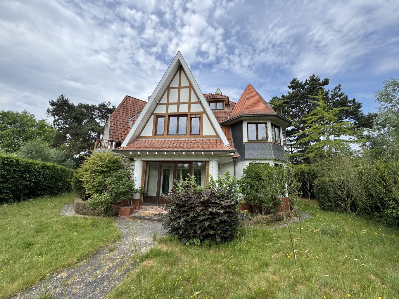 Karaktervolle villa in cottagestijl uit het interbellum, gelegen in één van de mooiste lanen van het Zoute, op wandelafstand van het Kerkje van de Dominikanen en de "Royal Zoute Tennis Club". Indeling: inkomhall met vestiaire en gastentoilet. Ruime woon- en eetkamer met mooie zichten op de tuin. Afzonderlijke keuken. Op de eerste verdieping: 5 ruime slaapkamers. Praktische douchekamer. Op de 2de etage: 6de en 7de slaapkamer. Badkamer. Zolderruimte. Inpandige garage. Bezoek na afspraak via één van onze kantoren.
