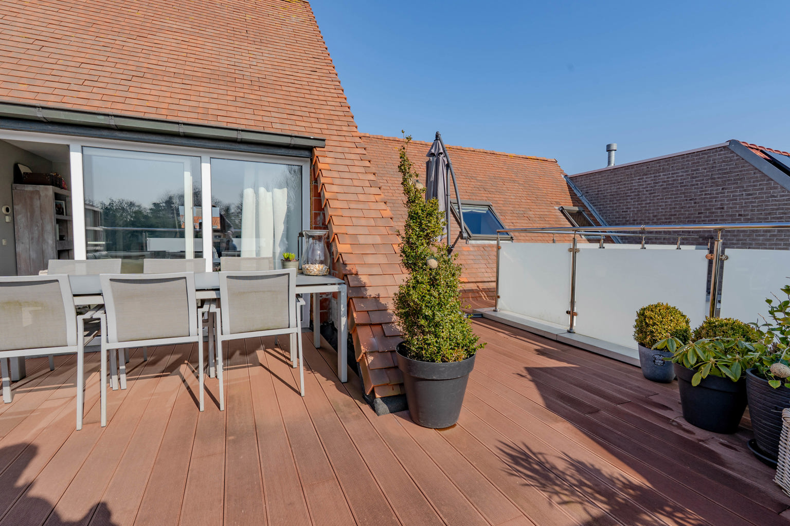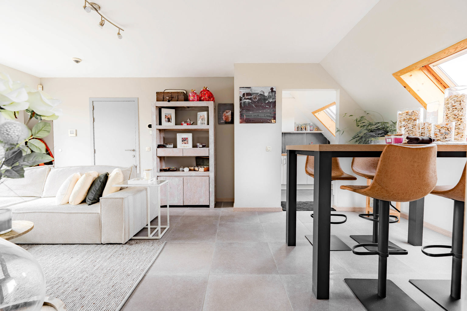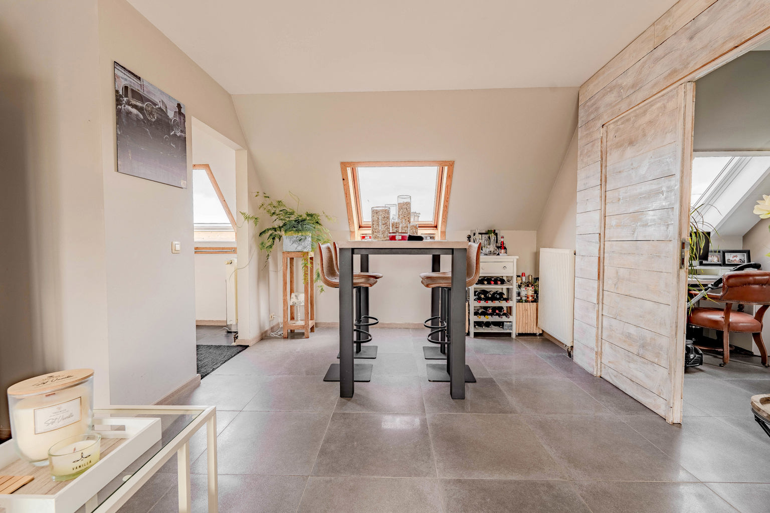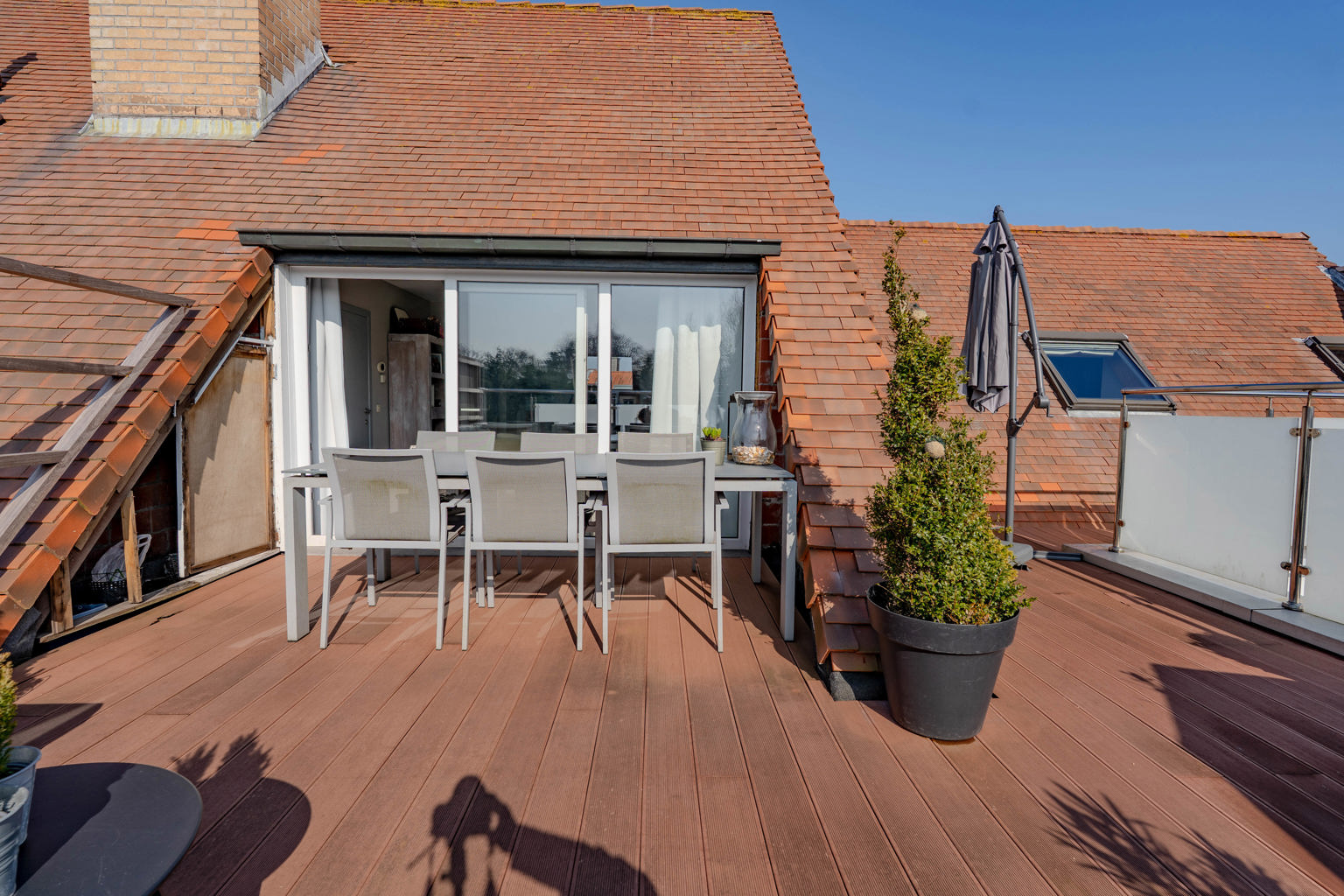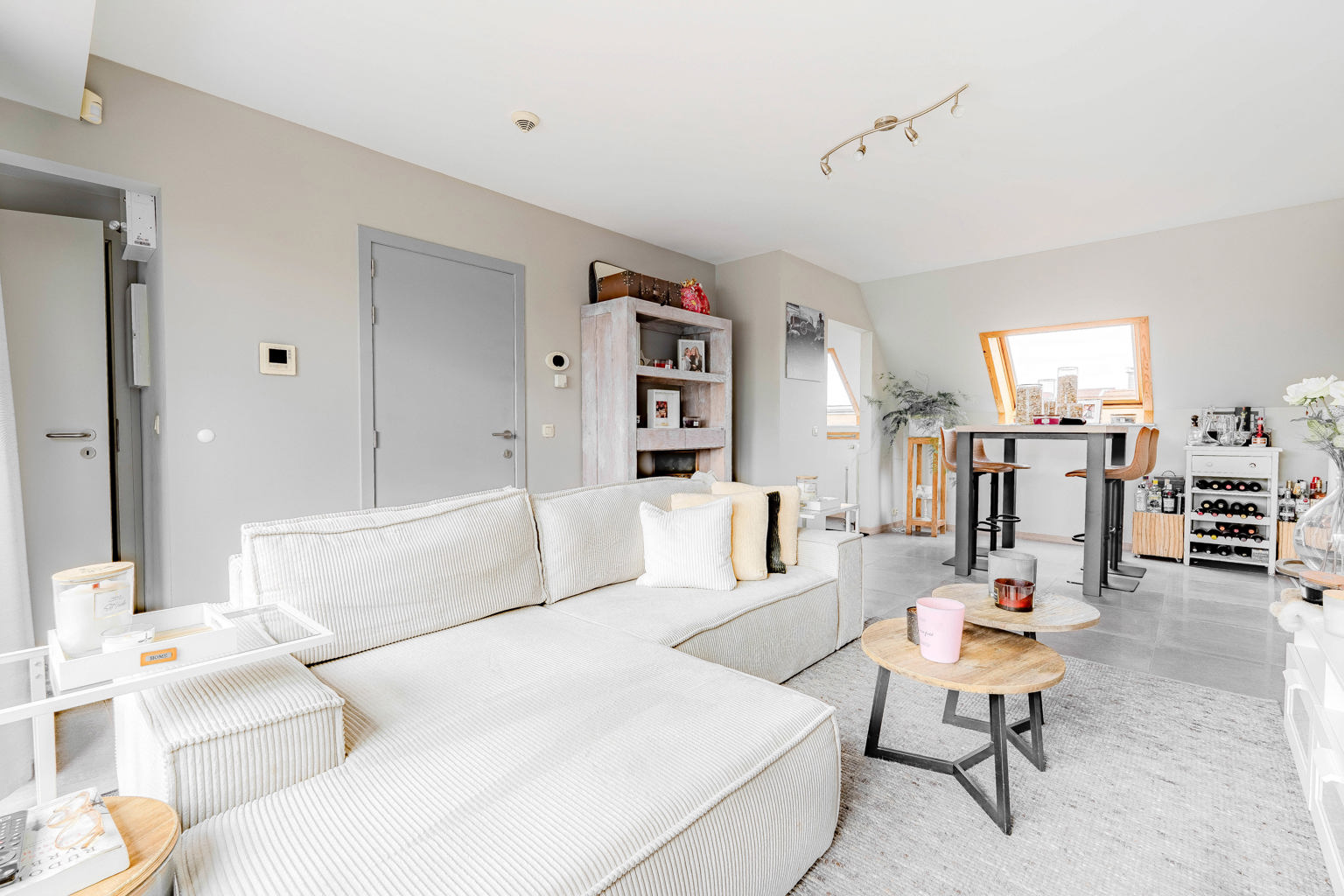 Prachtige penthouse met een uitzonderlijke ligging aan de Groentenmarkt, in het bruisende hart van de stad. Het appartement combineert een aangenaam wooncomfort met een groot zuidgericht terras waar u in alle rust kunt genieten van de zon en volledige privacy. Ruime inkomhal met een handige vestiairekast en een apart gastentoilet. De lichtrijke leefruimte biedt plaats voor zowel een gezellige zithoek als een ruime eettafel en sluit rechtstreeks aan op het zonnige terras, waardoor binnen en buiten naadloos in elkaar overvloeien. De volledig uitgeruste keuken is praktisch ingericht en voorzien van alle nodige toestellen. De hoofdslaapkamer is ruim genoeg voor een dubbel bed en beschikt over ingemaakte kasten die extra bergruimte bieden. De badkamer is stijlvol afgewerkt en uitgerust met een inloopdouche, een lavabo en een aansluiting voor een wasmachine. De tweede slaapkamer kan perfect dienen als kinderkamer of bureau en biedt ruimte voor een stapelbed en een werkhoek. In de residentie is er bovendien een gemeenschappelijke fietsenberging, wat het dagelijks comfort nog vergroot. Deze penthouse is de ideale woonplek voor wie houdt van licht, ruimte, privacy en een centrale ligging.