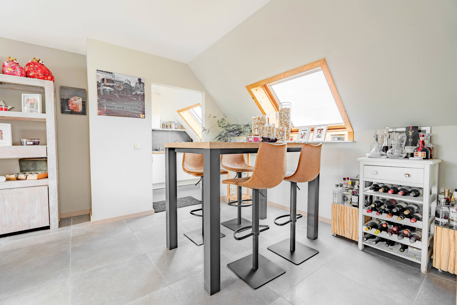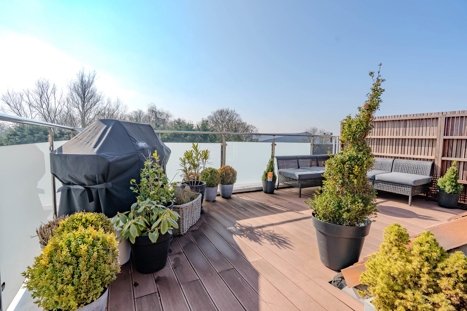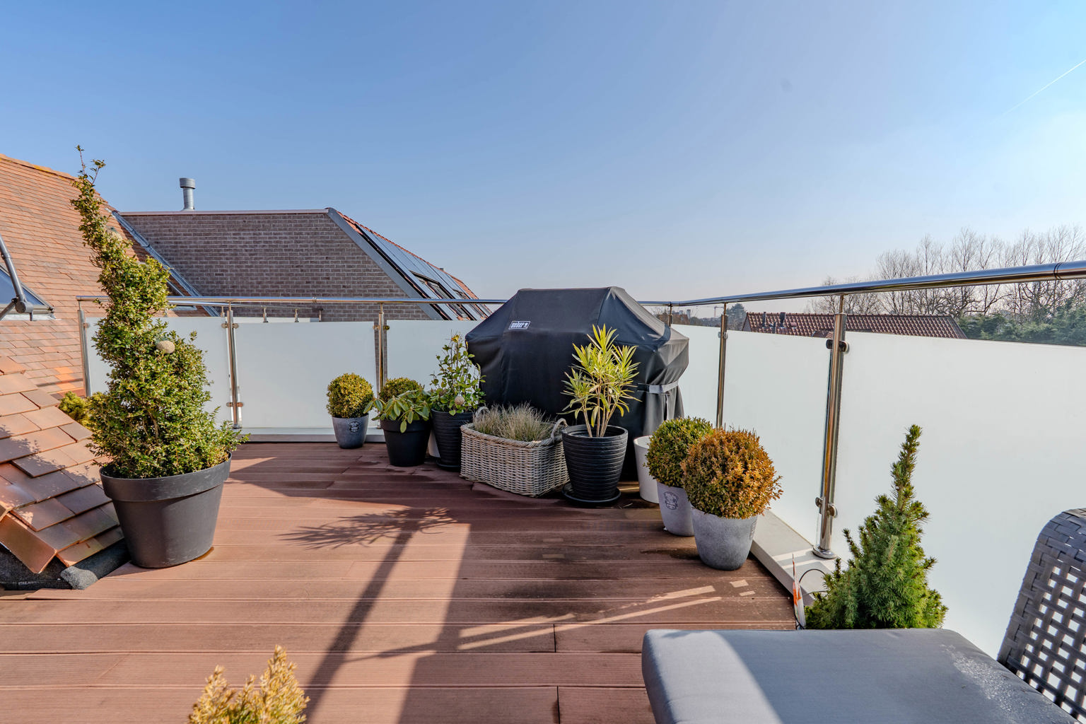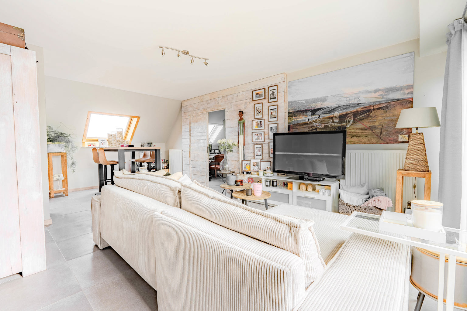 Prachtige penthouse met een uitzonderlijke ligging aan de Groentenmarkt, in het bruisende hart van de stad. Het appartement combineert een aangenaam wooncomfort met een groot zuidgericht terras waar u in alle rust kunt genieten van de zon en volledige privacy. Ruime inkomhal met een handige vestiairekast en een apart gastentoilet. De lichtrijke leefruimte biedt plaats voor zowel een gezellige zithoek als een ruime eettafel en sluit rechtstreeks aan op het zonnige terras, waardoor binnen en buiten naadloos in elkaar overvloeien. De volledig uitgeruste keuken is praktisch ingericht en voorzien van alle nodige toestellen. De hoofdslaapkamer is ruim genoeg voor een dubbel bed en beschikt over ingemaakte kasten die extra bergruimte bieden. De badkamer is stijlvol afgewerkt en uitgerust met een inloopdouche, een lavabo en een aansluiting voor een wasmachine. De tweede slaapkamer kan perfect dienen als kinderkamer of bureau en biedt ruimte voor een stapelbed en een werkhoek. In de residentie is er bovendien een gemeenschappelijke fietsenberging, wat het dagelijks comfort nog vergroot. Deze penthouse is de ideale woonplek voor wie houdt van licht, ruimte, privacy en een centrale ligging.