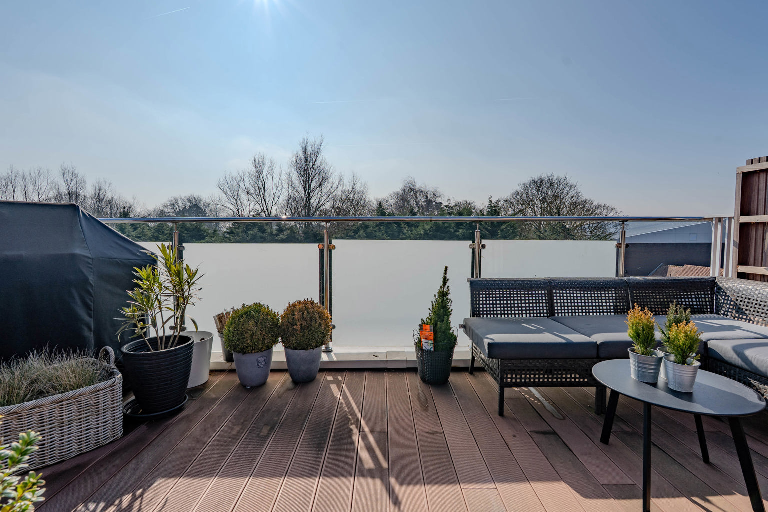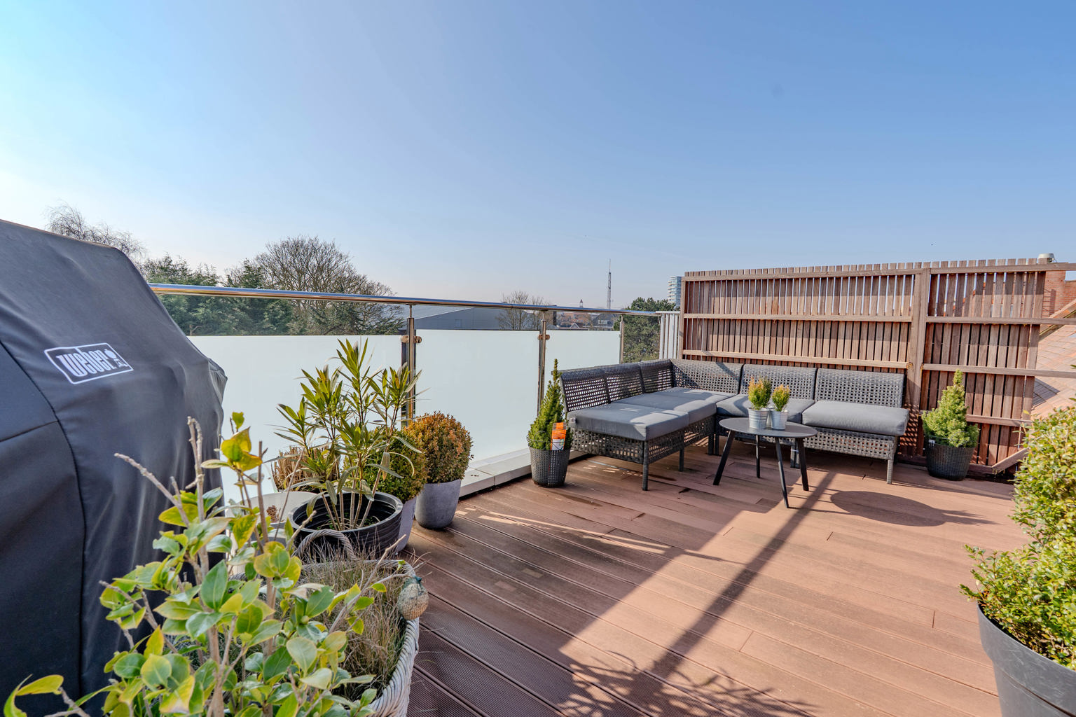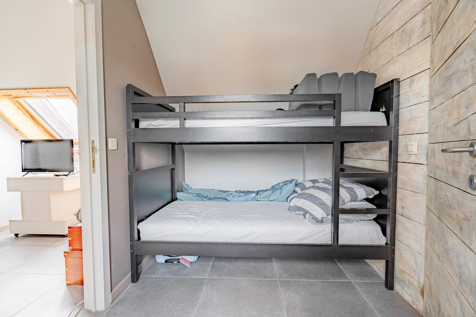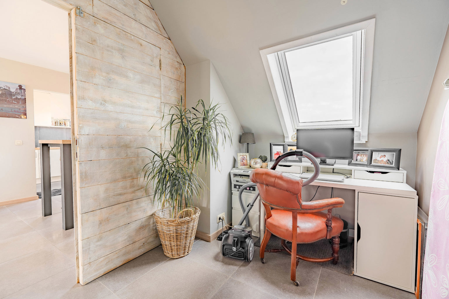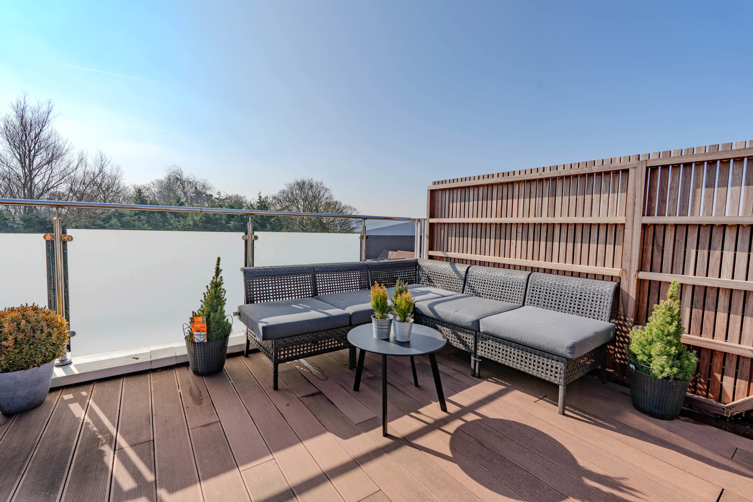 Prachtige penthouse met een uitzonderlijke ligging aan de Groentenmarkt, in het bruisende hart van de stad. Het appartement combineert een aangenaam wooncomfort met een groot zuidgericht terras waar u in alle rust kunt genieten van de zon en volledige privacy. Ruime inkomhal met een handige vestiairekast en een apart gastentoilet. De lichtrijke leefruimte biedt plaats voor zowel een gezellige zithoek als een ruime eettafel en sluit rechtstreeks aan op het zonnige terras, waardoor binnen en buiten naadloos in elkaar overvloeien. De volledig uitgeruste keuken is praktisch ingericht en voorzien van alle nodige toestellen. De hoofdslaapkamer is ruim genoeg voor een dubbel bed en beschikt over ingemaakte kasten die extra bergruimte bieden. De badkamer is stijlvol afgewerkt en uitgerust met een inloopdouche, een lavabo en een aansluiting voor een wasmachine. De tweede slaapkamer kan perfect dienen als kinderkamer of bureau en biedt ruimte voor een stapelbed en een werkhoek. In de residentie is er bovendien een gemeenschappelijke fietsenberging, wat het dagelijks comfort nog vergroot. Deze penthouse is de ideale woonplek voor wie houdt van licht, ruimte, privacy en een centrale ligging.