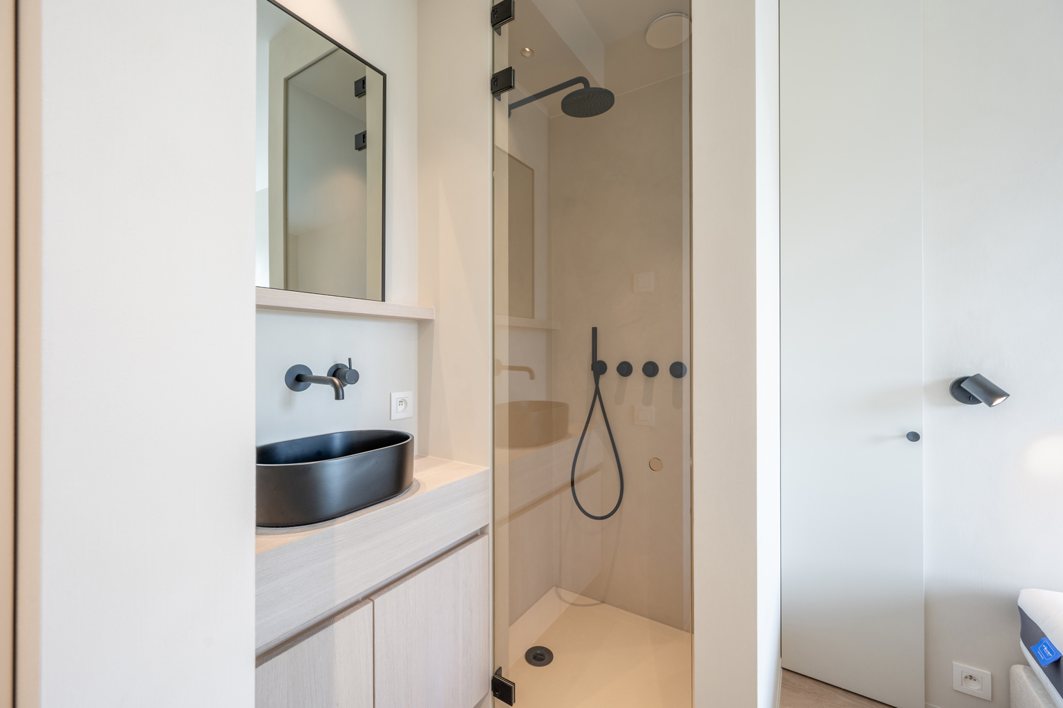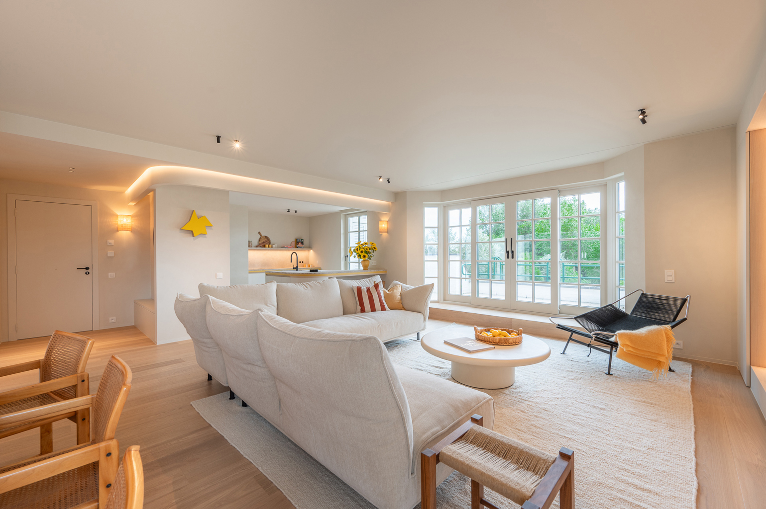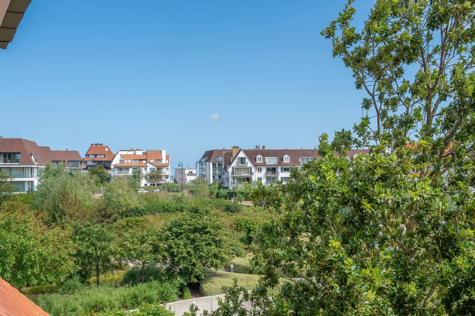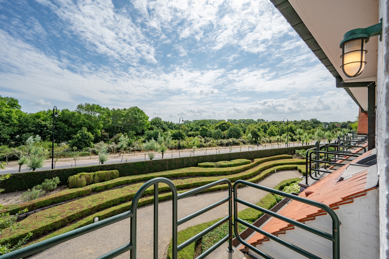Volledig gerenoveerd hoekappartement in een standingvolle residentie in hartje Zoute, in het zeer exclusieve domein "Tennis Gardens" - een privé park van +/- 5 ha, op een spatje van de zee en op wandelafstand van de "Royal Zoute Tennis Club". Het domein beschikt over een overdekt privé zwembad uitsluitend toegankelijk voor de bewoners. Samenstelling: inkomhall, vestiaire en toilet. Ruime, aangename woonkamer met grote vensterpartijen openend op groot zuidgericht terras en met adembenemend zicht op de tuinen van het domein. Volledig ingerichte keuken. Hoofdslaapkamer met aansluitende complete badkamer en toegang tot een ruim terras. 2de en 3de slaapkamer telkens voorzien van praktische douchekamer. Mogelijkheid tot aankoop van dubbele garagebox en ruime berging in de benedenverdieping van de residentie. Conciërge: maximale veiligheid. De "Eastgreen": totaal en luxueus. Bezoek gaarne na afspraak op één van onze kantoren.