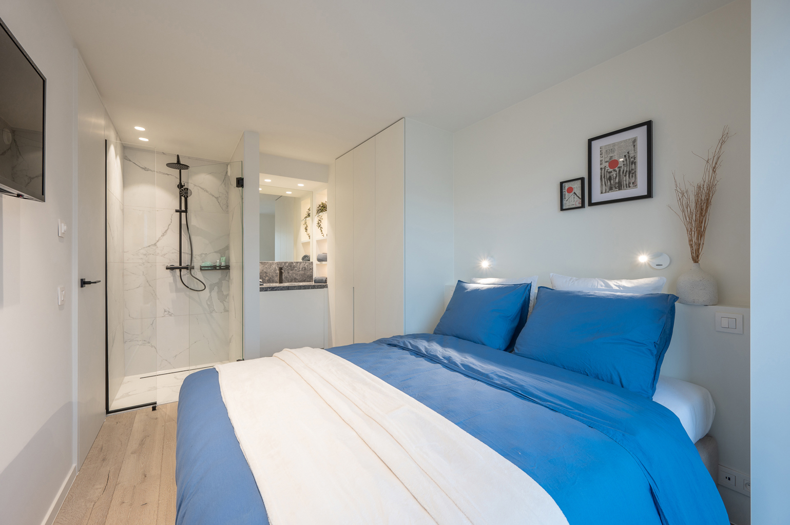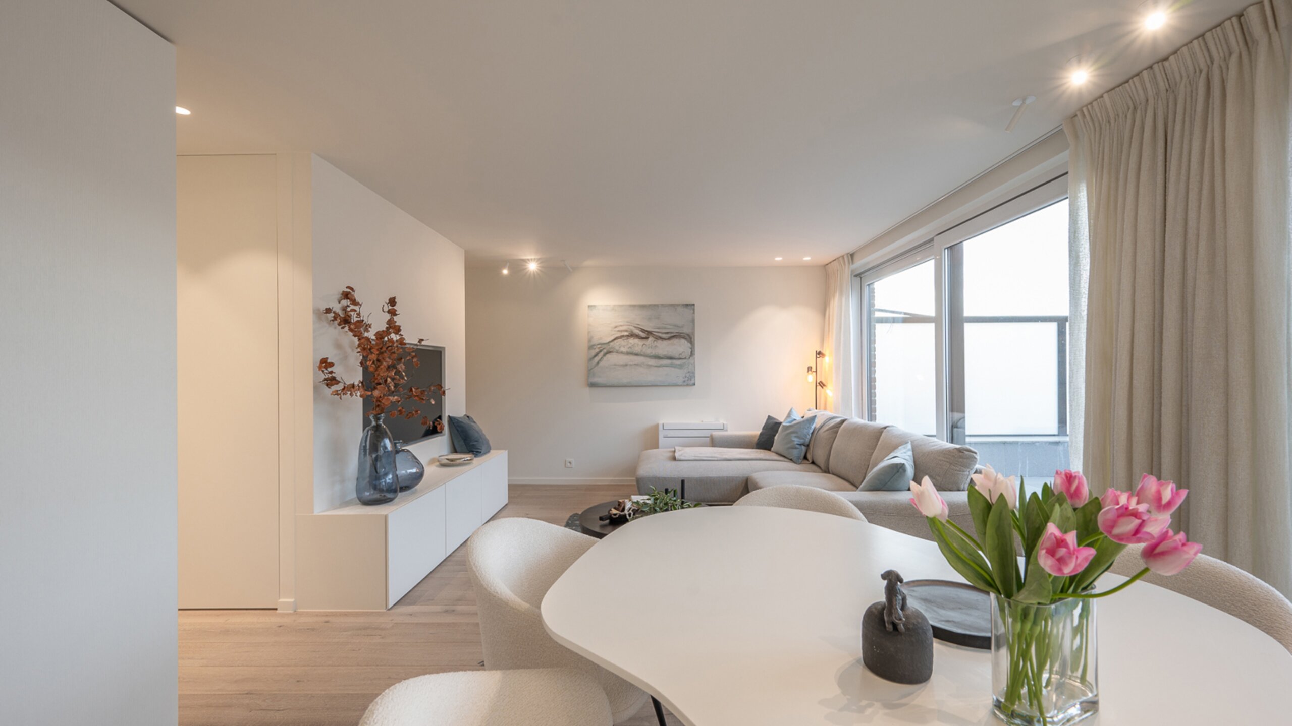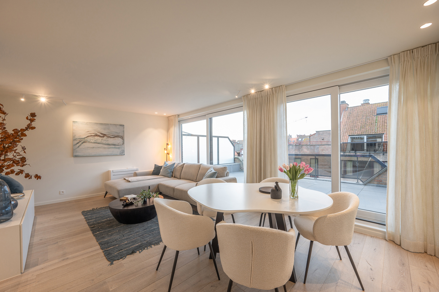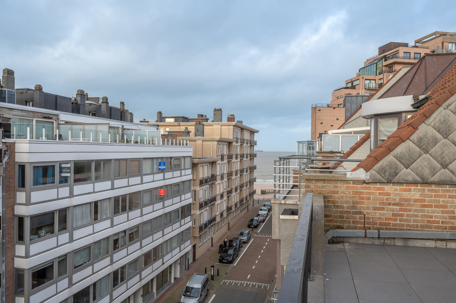 Gerenoveerd en goed gelegen penthouse met veel lichtinval op wandelafstand van de Zeedijk, vlakbij de Lippenslaan en op een zuchtje van het Rubensplein. Zeer aangenaam zijdelings zeezicht. Indeling: inkomhall met apart toilet. Zonnige woon- en eetkamer openend op terras. Praktische open keuken. Eerste slaapkamer met aansluitende douchekamer. Tweede slaapkamer met aansluitende douchekamer. Beide slaapkamer geven uit op een tweede groot terras achteraan. Bezoek graag na afspraak via één van onze kantoren.