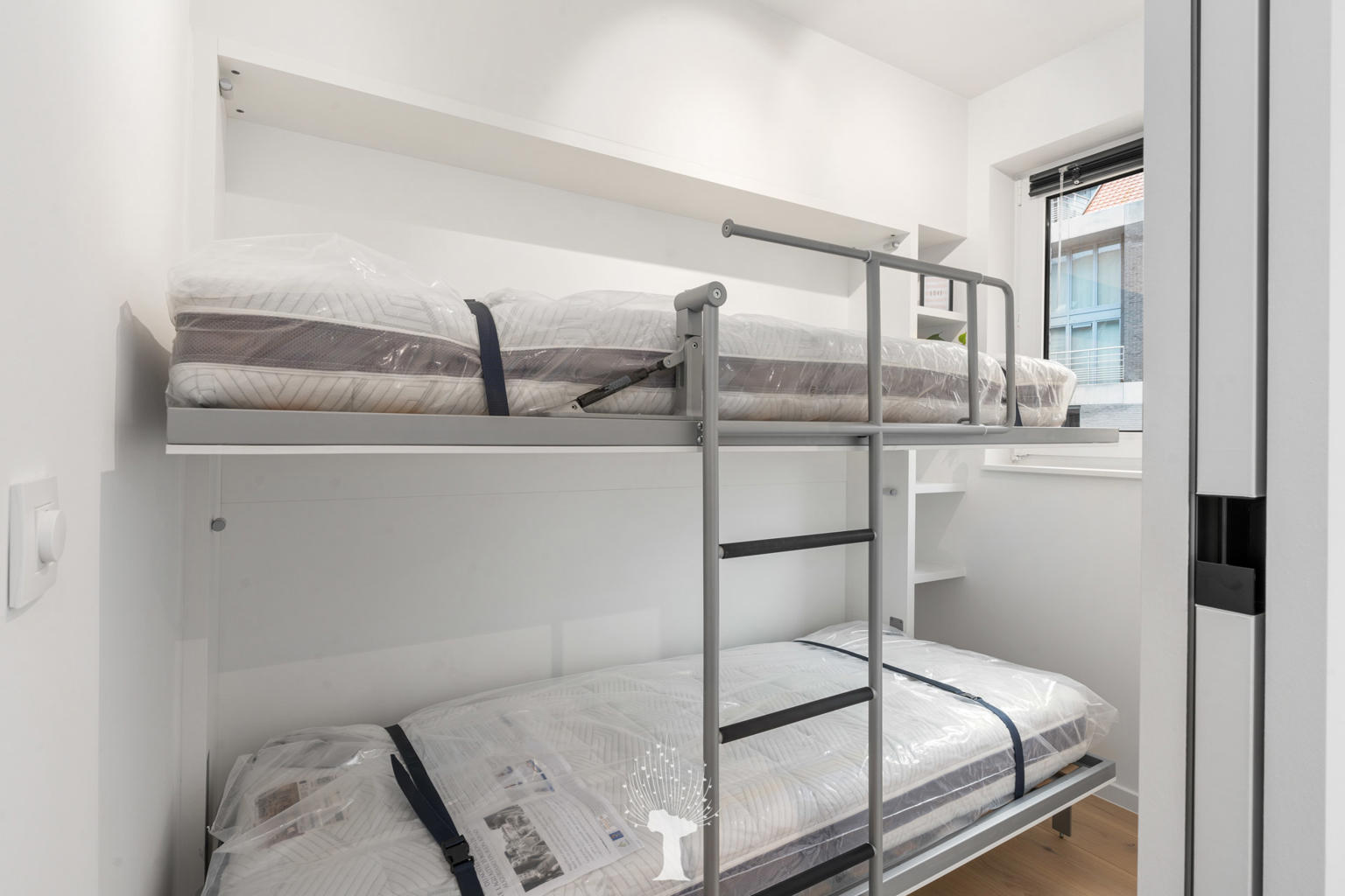 Recent appartement gelegen nabij het Rubensplein op wandelafstand van het strand. Indeling: inkom met vestiaire en gastentoilet. Open moderne, volledig geïnstalleerde keuken. Lichtrijke woon- en eetkamer. 2 slaapkamers. Douchekamer. Fietsenberging in de residentie. Mogelijkheid tot aankoop van een garage in de nabijheid van de residentie. Bezoek en bijkomende informatie gaarne na afspraak via één van onze kantoren.