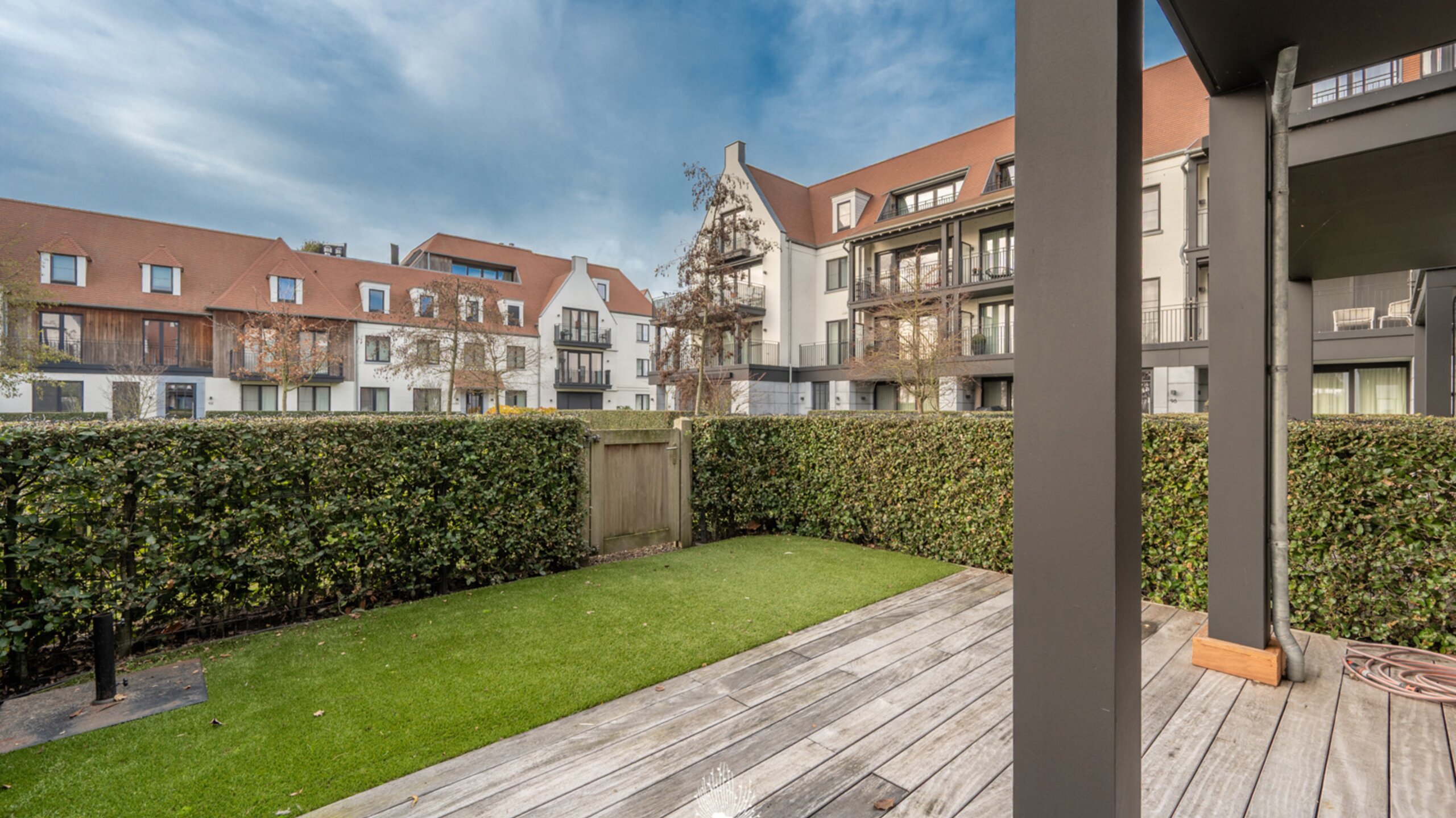 Prachtig tuinappartement met zicht op het meer van Duinenwater. Samenstelling: inkom met vestiaire en gastentoilet. Aangename woon- en eetkamer openend op terras en tuin en met prachtig uitzicht op het meer. Volledig ingerichte, open keuken voorzien van alle huishoudtoestellen. Praktische berging. Ruime hoofdslaapkamer. Badkamer. 2de slaapkamer voor dubbel bed. Mooie afwerkingsgraad. Mogelijkheid tot aankoop van 1 garagebox in de benedenverdieping van de residentie. 2 privatieve kelders en 2 fietsenhaken. Bezoek en bijkomende informatie gaarne na afspraak via één van onze kantoren. Warm aanbevolen!
