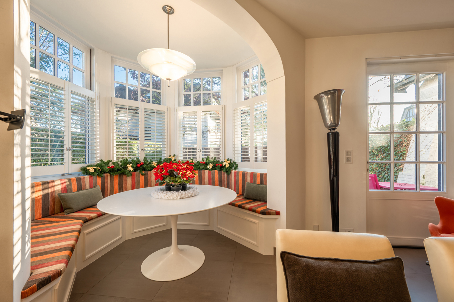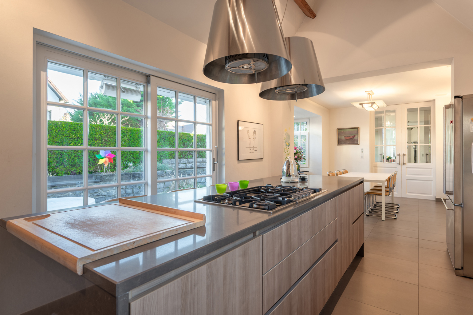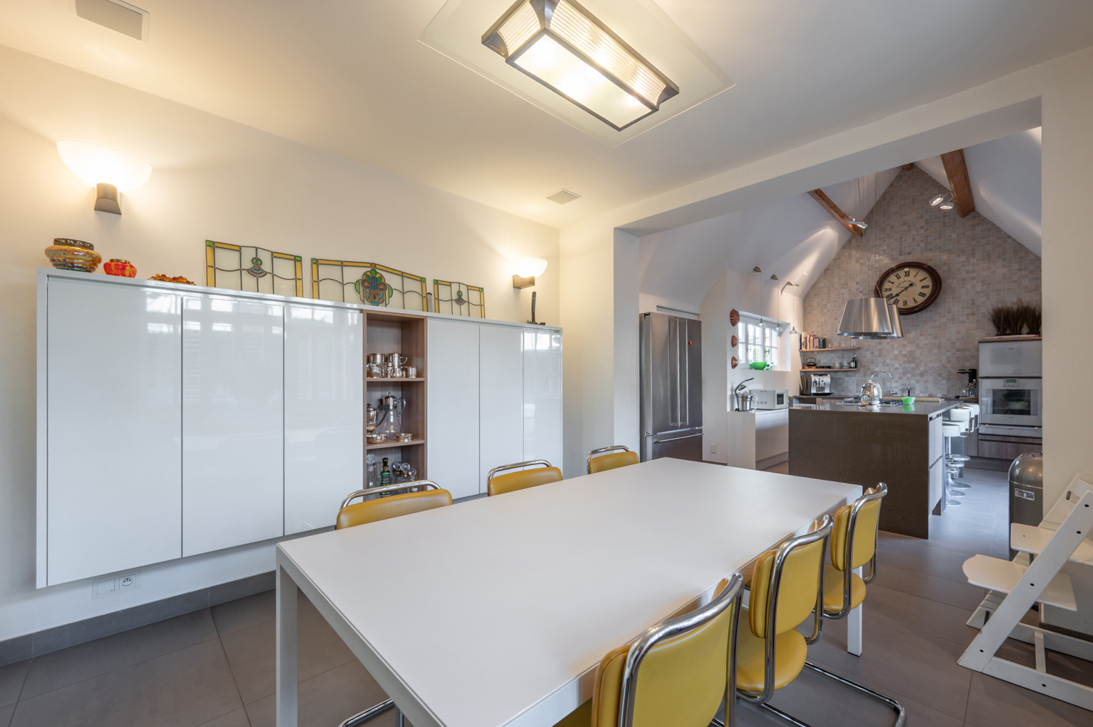 Typische koppelvilla, ideaal gelegen tussen de Zoutelaan en de zeedijk, hartje Zoute. Samenstelling: ruime inkomhall met vestiaire en gastentoilet. Grote woonkamer met gezellige open gashaard. Volledig ingerichte keuken met aansluitende eetkamer en praktische berging. Aangenaam terras en tuin met vijver. Op de eerste verdieping: ruime slaapkamer met toegang tot terras en aansluitende badkamer (bad, douche, dubbele lavabo, wc). Op de tweede verdieping: 2de slaapkamer met aansluitende douchekamer (douche, lavabo, toilet). 3de slaapkamer met badkamer (bad, lavabo, toilet). Praktische zolderruimte. Op de benedenverdieping (-1) - toegang via (fiets)lift - zeer ruime polyvalente ruimte die kan dienst doen als tv-kamer, extra slaapkamer, hobbykamer, … Praktische wasplaats voorzien van dubbele lavabo en toilet. Dubbele douche, ruime fietsenberging. Technische ruimte. Outdoor-parking voor meerdere wagens. De eigendom is uitgerust met een domotica-systeem, vloerverwarming, centraal stofzuigsysteem, automatisch beregeningsysteem voor de tuin, … Bezoek na afspraak via één van onze kantoren.
