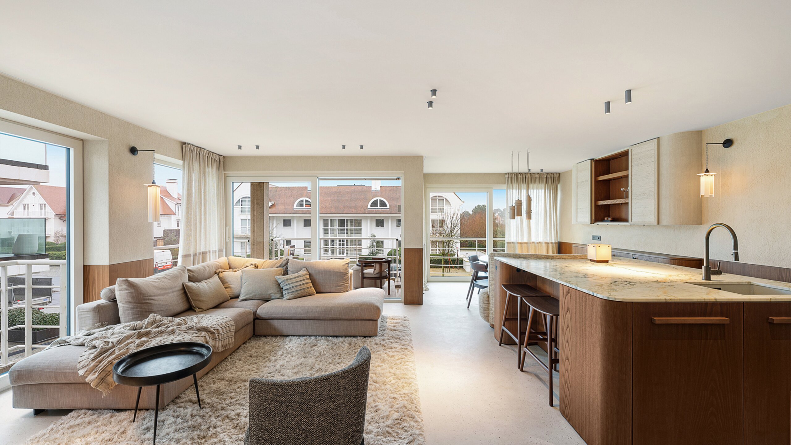 Subliem hoekappartement nabij de mondaine winkels van het Zoute, om de hoek van de Zeedijk en het strand. Indeling: inkom met vestiaire en toilet. Woonkamer uitgevend op ruim Zuidgericht terras. Volledig ingerichte open keuken voorzien van alle toestellen (Miele/Liebherr). Hoofdslaapkamer met aansluitende badkamer. 2de slaapkamer met praktische douchekamer. Knusse 3de slaapkamer. Hoogstaande renovatie met knap maatwerk. Privatieve kelder. Gemeenschappelijke fietsenberging. Mogelijkheid tot aankoop van een autostaanplaats in de residentie. Bezoek gaarne na afspraak via één van onze kantoren.