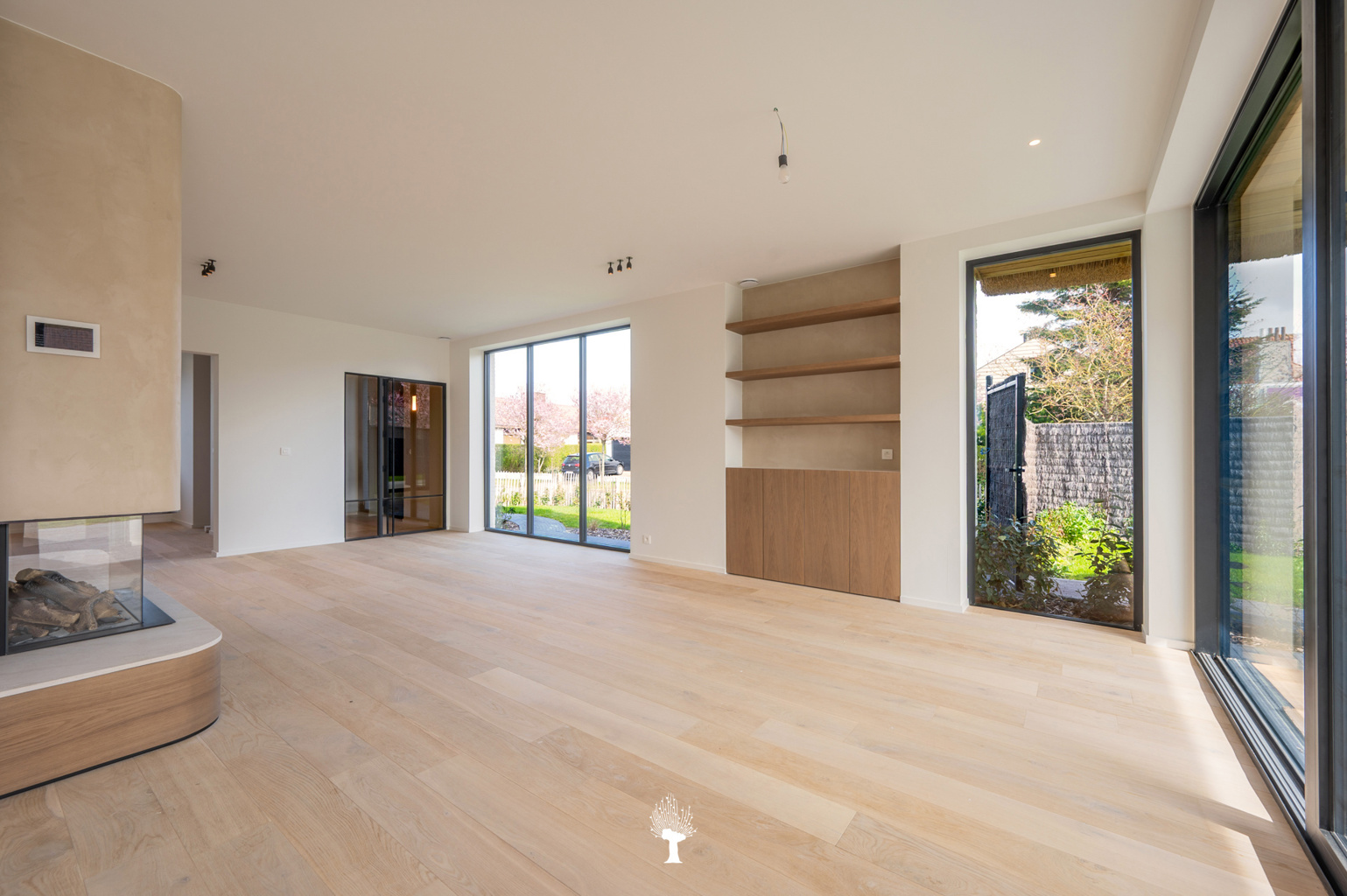 Nieuwbouwvilla op een ruim hoekperceel aan de Acht-Meilaan in Knokke, op korte afstand van het centrum. Deze stijlvolle villa kenmerkt zich door royale volumes, veel lichtinval en een praktische indeling met vier ruime slaapkamers en drie badkamers.