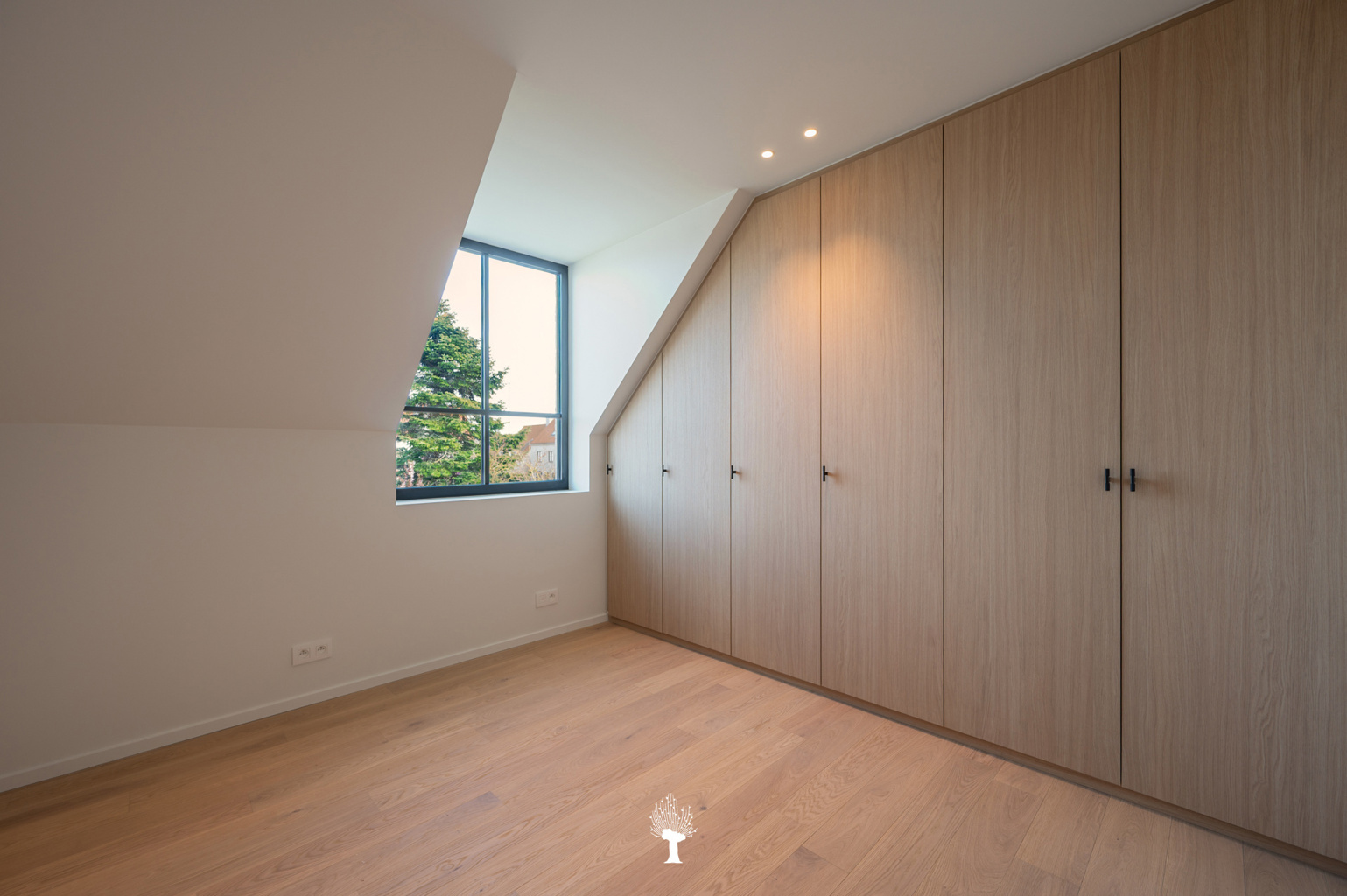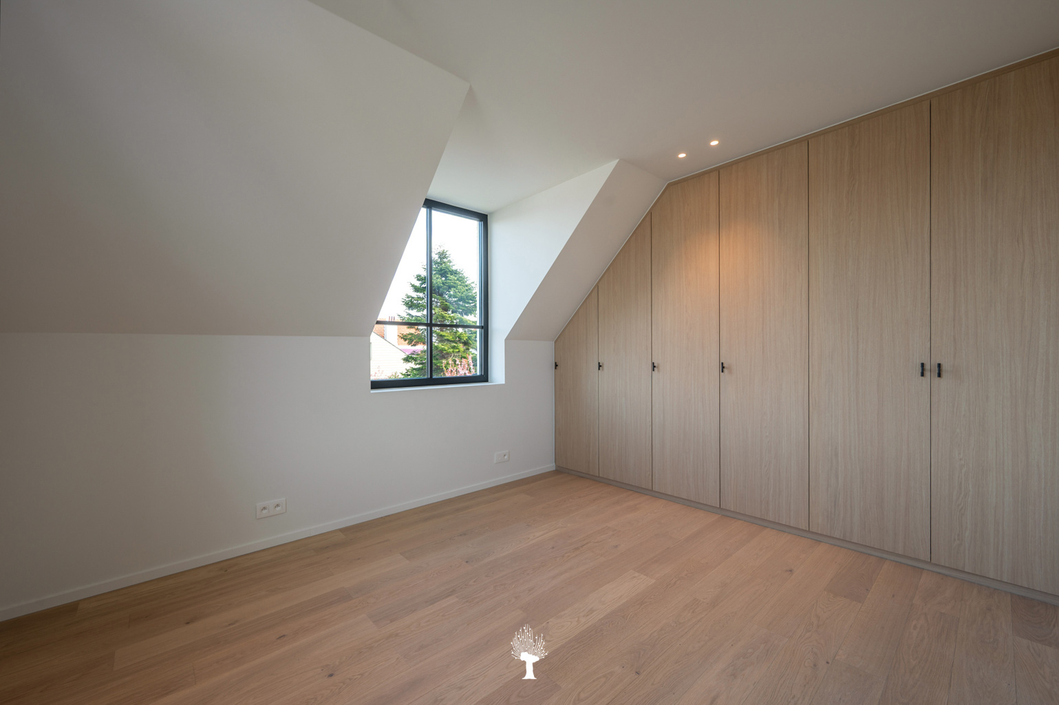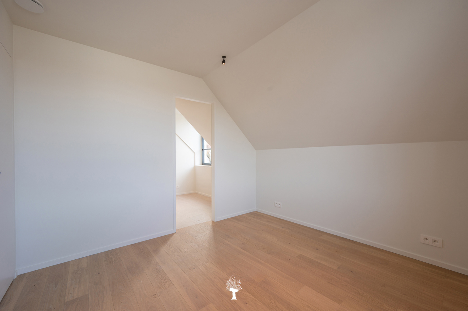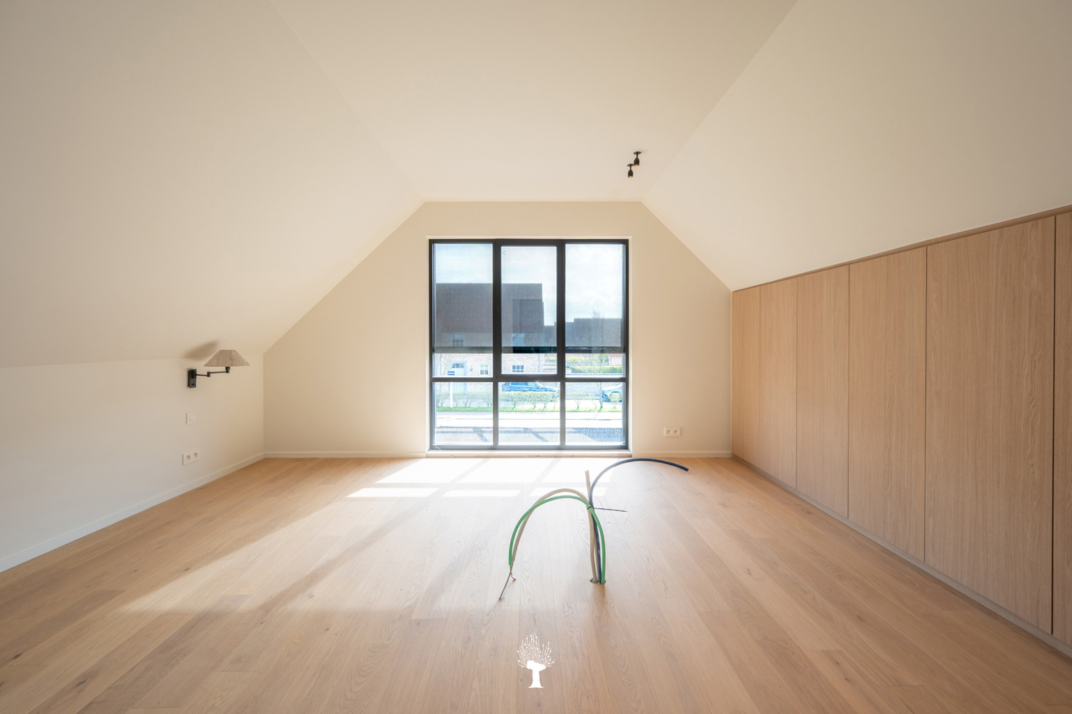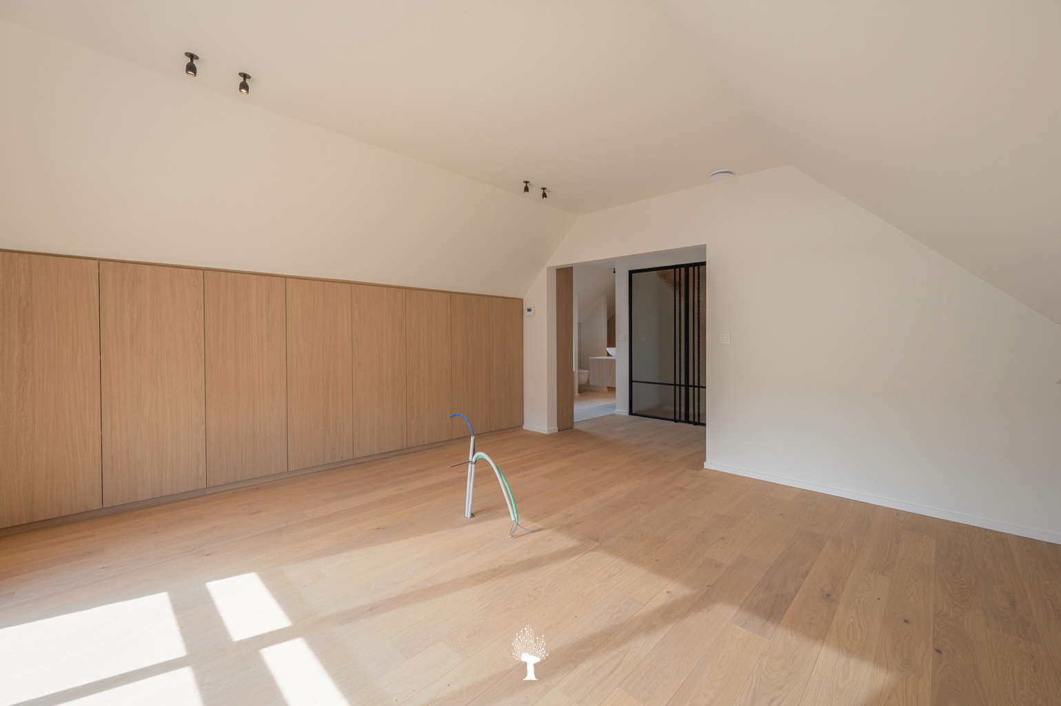 Indeling: Inkomhal met apart gastentoilet. Bureauruimte. Lichtrijke leefruimte van bijna 40 m². Open, volledig uitgeruste keuken. Aansluitend vindt u een ruime berging met alle technieken en voorzieningen van de woning. Vanuit de leefruimte heeft u toegang tot het zuidgerichte, overdekte terras. Op de eerste verdieping bevinden zich vier volwaardige slaapkamers en drie badkamers. Nachttoilet. Zolder die, indien gewenst, kan worden ingericht als twee extra slaapkamers.