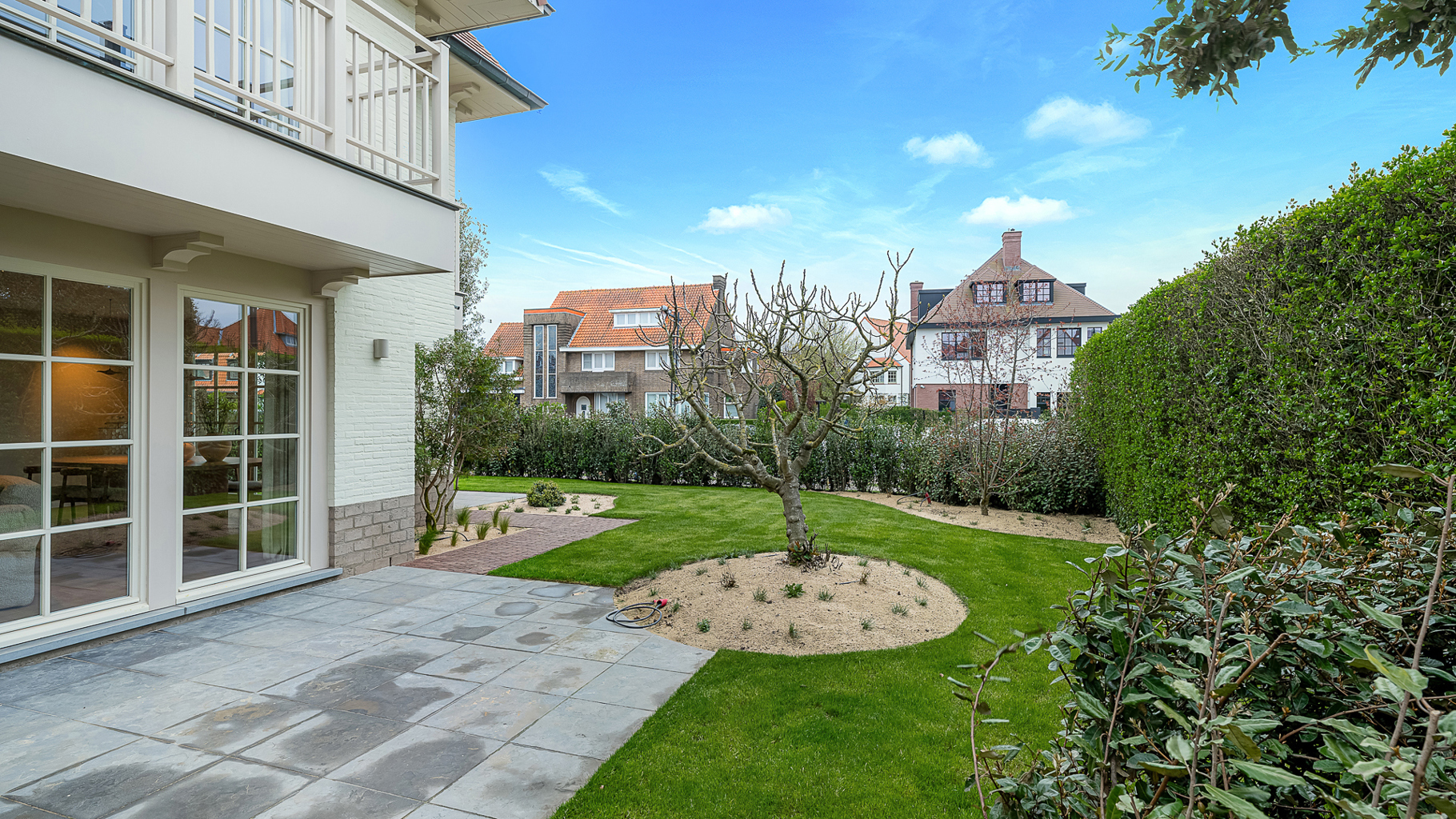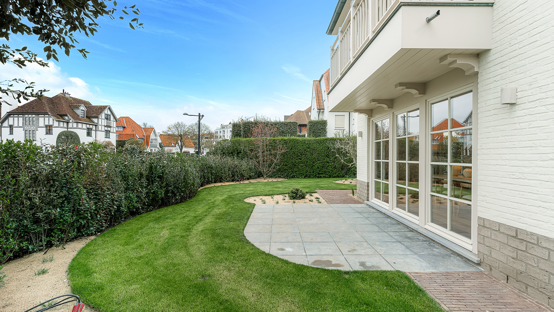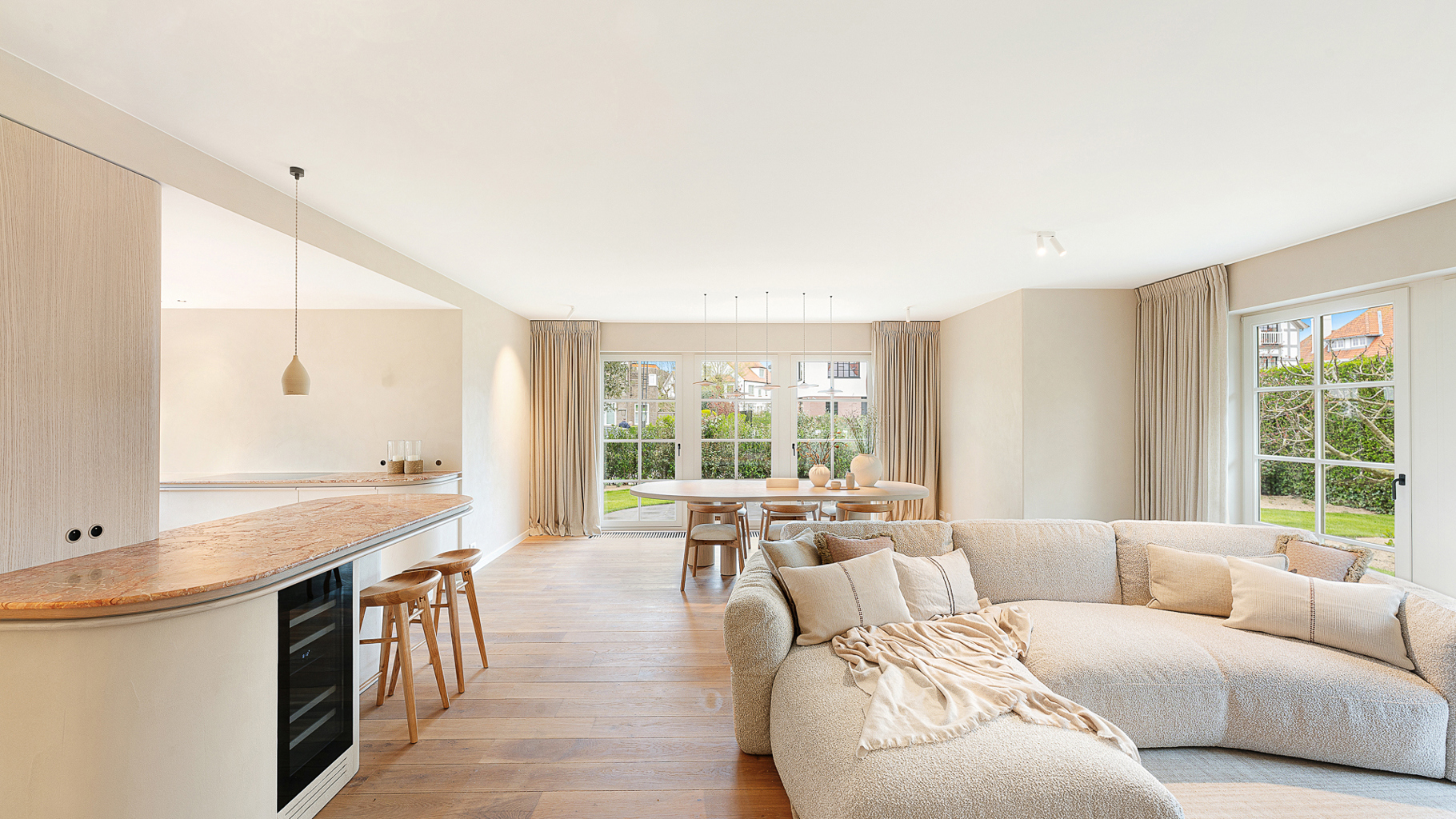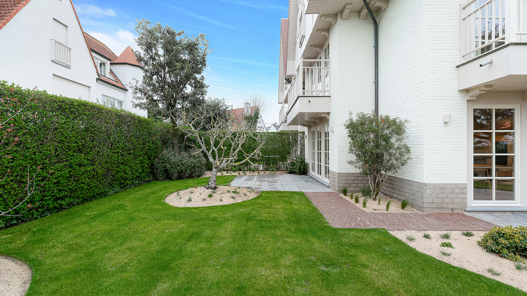 Knap gerenoveerde koppelvilla, ideaal gelegen op wandelafstand van het Albertplein en de 'Royal Zoute Golf Club", waar comfort en hedendaags design elkaar ontmoeten. Deze villa werd tot in het kleinste detail afgewerkt en biedt een combinatie van comfortabel wonen met hedendaags design. Indeling: inkomhal met vestiaire en wc. Zonovergoten leefruimte met gashaard, openend op de zonnige terrassen. Open keuken voorzien van alle toestellen en wijnkoeler. Op de 1ste verdieping: master bedroom met 2 terrassen en aangrenzende royale badkamer (douche, dubbele lavabo en wc). 2de volwaardige slaapkamer met ingemaakte kast en eigen douchekamer (douche, lavabo, wc). Op de 2de verdieping: nachthal met bureelruimte. 3de en 4de slaapkamer met gemeenschappelijke badkamer (bad, douche, lavabo). Aparte wc en wasplaats. Mogelijkheid tot aankoop van een gesloten garagebox voor 2 wagens (tandem). Bezoek gaarne na afspraak via één van onze kantoren.