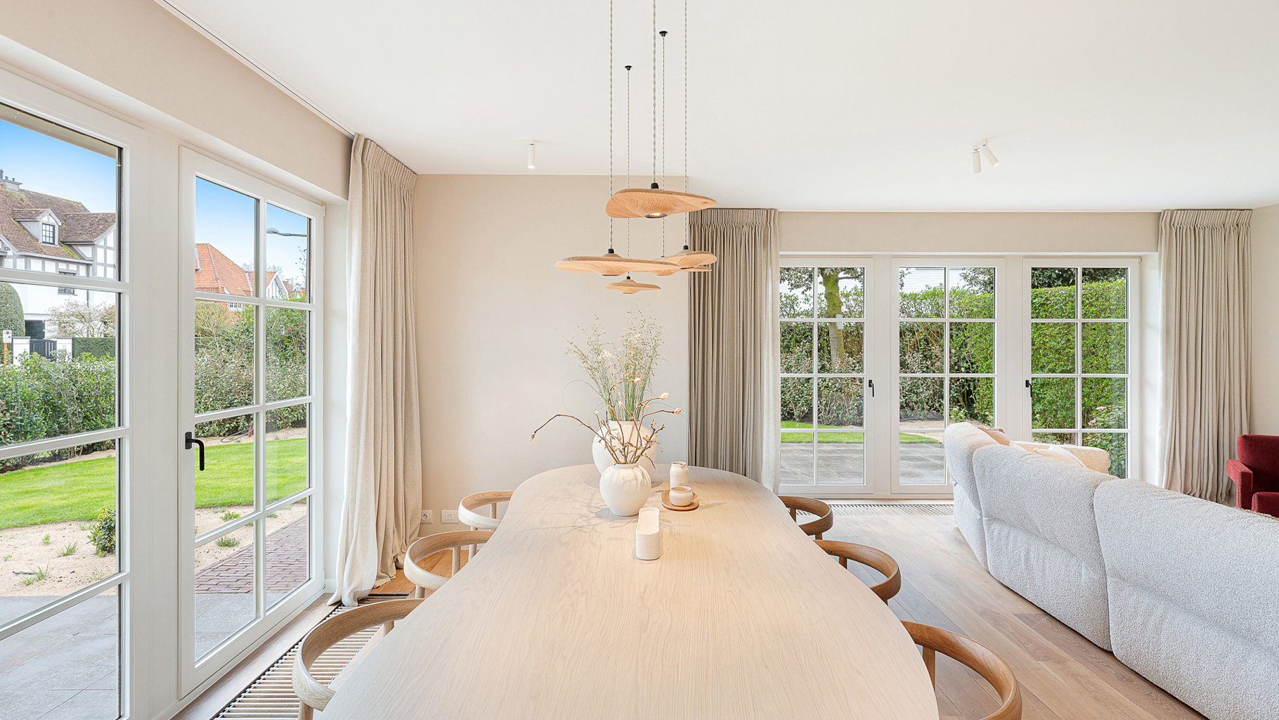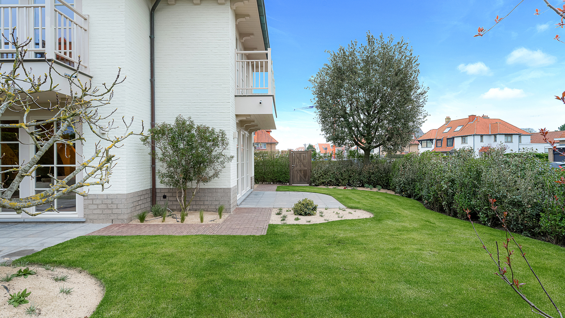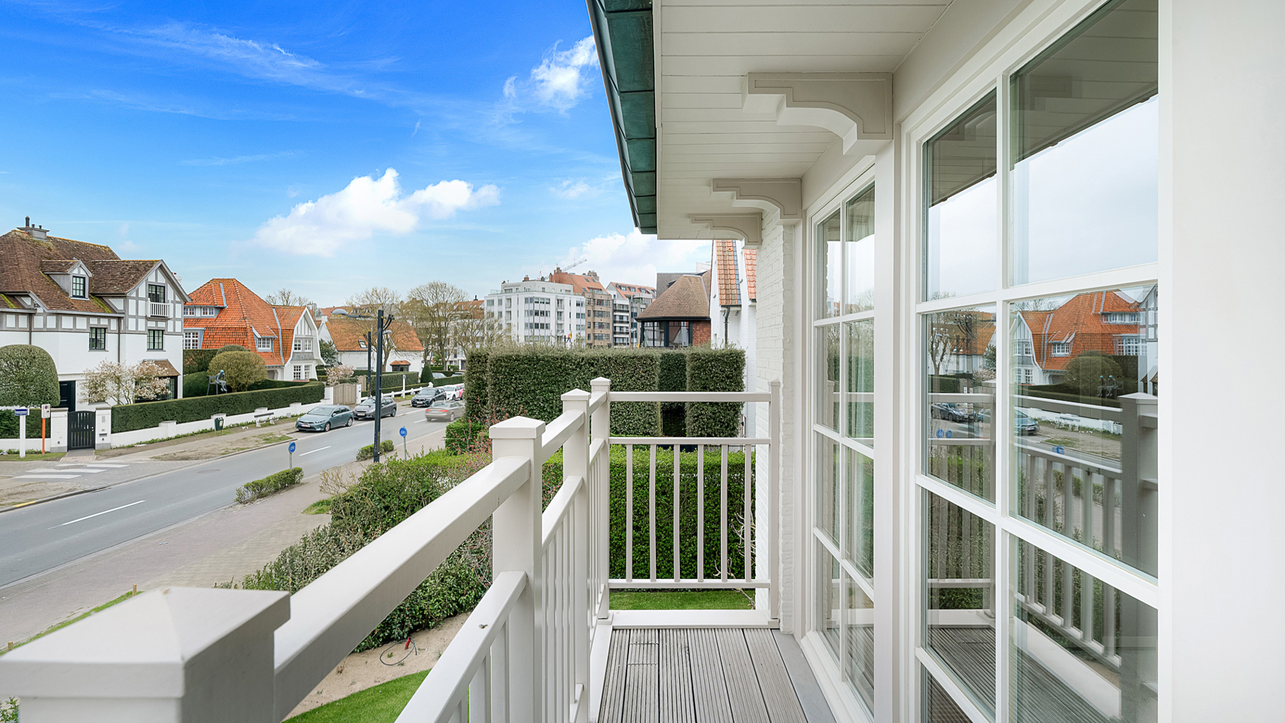 Knap gerenoveerde koppelvilla, ideaal gelegen op wandelafstand van het Albertplein en de 'Royal Zoute Golf Club", waar comfort en hedendaags design elkaar ontmoeten. Deze villa werd tot in het kleinste detail afgewerkt en biedt een combinatie van comfortabel wonen met hedendaags design. Indeling: inkomhal met vestiaire en wc. Zonovergoten leefruimte met gashaard, openend op de zonnige terrassen. Open keuken voorzien van alle toestellen en wijnkoeler. Op de 1ste verdieping: master bedroom met 2 terrassen en aangrenzende royale badkamer (douche, dubbele lavabo en wc). 2de volwaardige slaapkamer met ingemaakte kast en eigen douchekamer (douche, lavabo, wc). Op de 2de verdieping: nachthal met bureelruimte. 3de en 4de slaapkamer met gemeenschappelijke badkamer (bad, douche, lavabo). Aparte wc en wasplaats. Mogelijkheid tot aankoop van een gesloten garagebox voor 2 wagens (tandem). Bezoek gaarne na afspraak via één van onze kantoren.