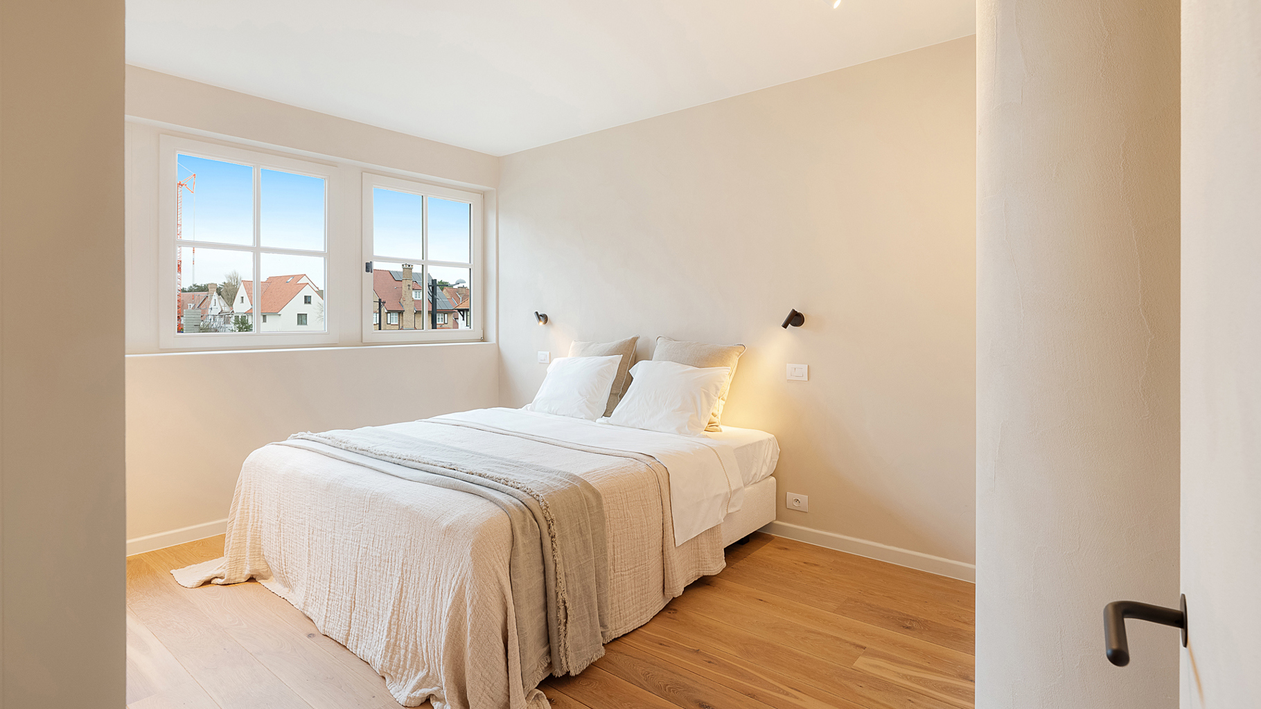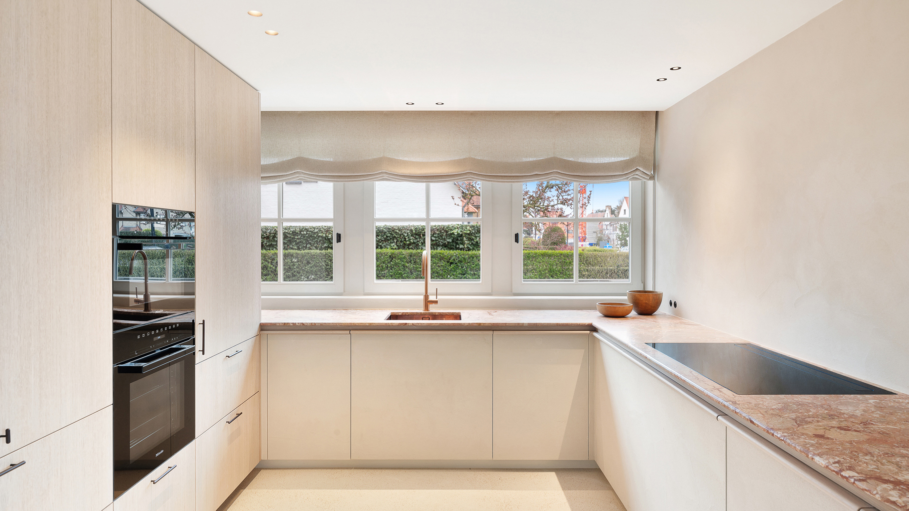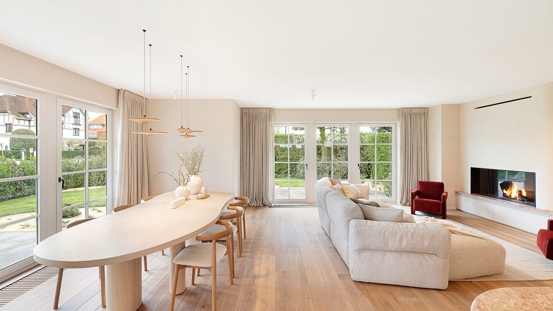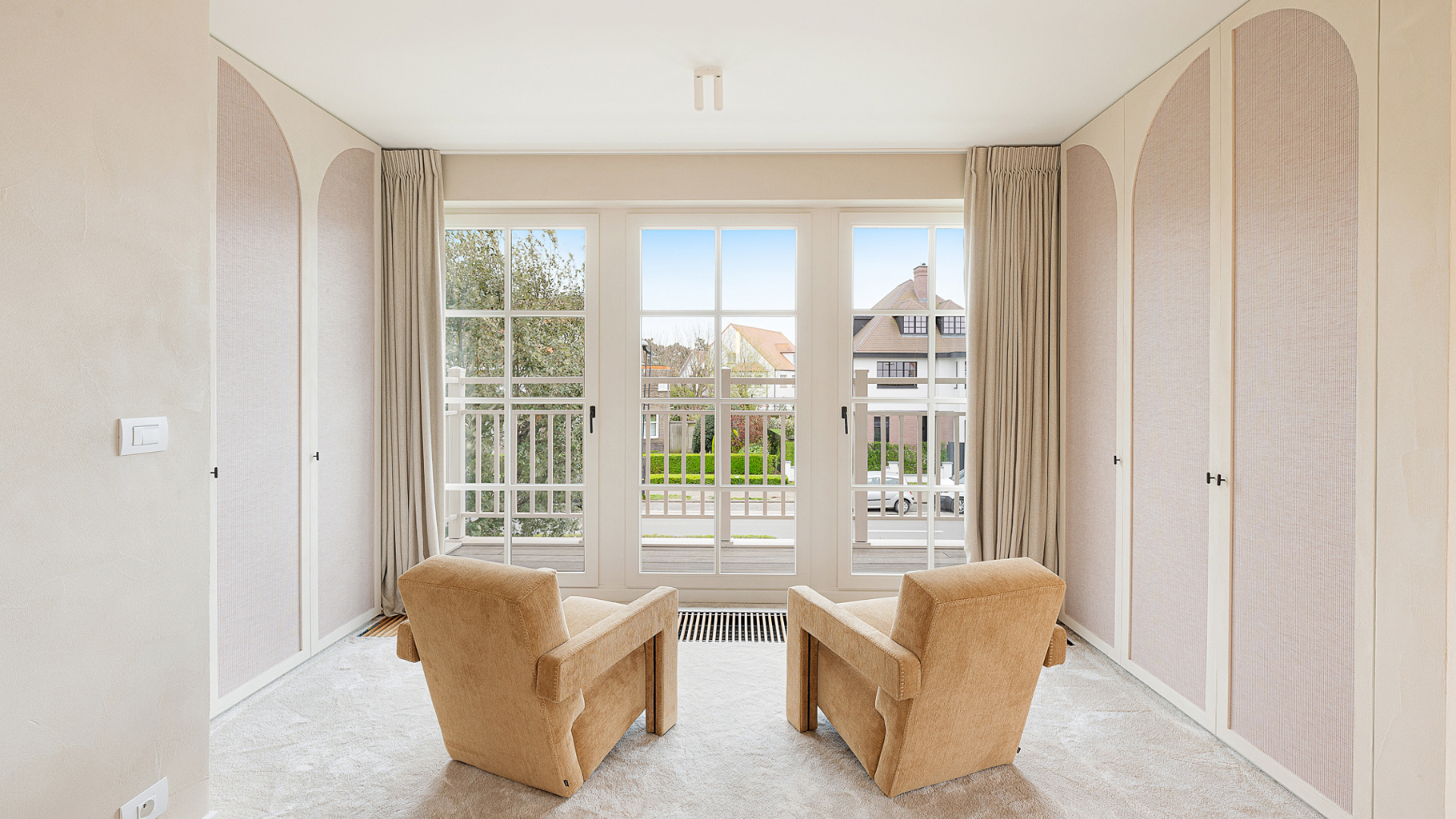Knap gerenoveerde koppelvilla, ideaal gelegen op wandelafstand van het Albertplein en de 'Royal Zoute Golf Club", waar comfort en hedendaags design elkaar ontmoeten. Deze villa werd tot in het kleinste detail afgewerkt en biedt een combinatie van comfortabel wonen met hedendaags design. Indeling: inkomhal met vestiaire en wc. Zonovergoten leefruimte met gashaard, openend op de zonnige terrassen. Open keuken voorzien van alle toestellen en wijnkoeler. Op de 1ste verdieping: master bedroom met 2 terrassen en aangrenzende royale badkamer (douche, dubbele lavabo en wc). 2de volwaardige slaapkamer met ingemaakte kast en eigen douchekamer (douche, lavabo, wc). Op de 2de verdieping: nachthal met bureelruimte. 3de en 4de slaapkamer met gemeenschappelijke badkamer (bad, douche, lavabo). Aparte wc en wasplaats. Mogelijkheid tot aankoop van een gesloten garagebox voor 2 wagens (tandem). Bezoek gaarne na afspraak via één van onze kantoren.