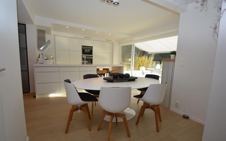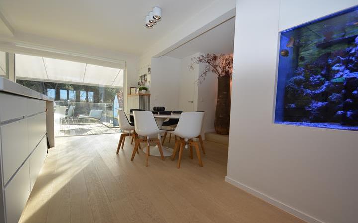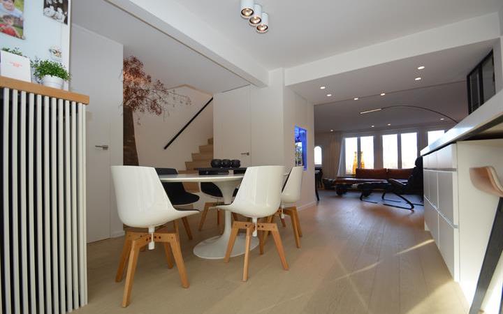 Prachtig gerenoveerd woonhuis vlakbij het pittoreske Oosthoekplein, gelegen in een rustige en groene omgeving. Samenstelling: grote open leefruimte met open haard op gas en open zicht op de polders. Eetkamer met toegang tot het zuidgericht terras en zicht op de tuin en de bossen. Open, volledig ingerichte keuken voorzien van alle huishoudtoestellen. Apart Toilet. Berging. Op de 2de etage: 3 slaapkamers. 1 badkamer en 1 praktische douchekamer. Toilet. Tweede, overdekt terras en zuidgerichte tuin. Inpandige garage voor 1 wagen en staanplaats voor de woning. Wasplaats en praktische bergingen. De renovatie werd gerealiseerd door interieurarchitect Bryan Chielens uit Knokke. Zonnepanelen aanwezig. Bezoek gaarne na afspraak via één van onze kantoren.