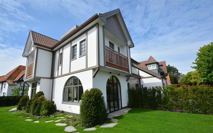 Uiterst luxueus gerenoveerde villa, in typische Zoute architectuur, gelegen in een paadje van het Oude Zoute nabij het Dominikanenkerkje en de zee. Samenstelling: inkom met vestiaire en toilet. Gezellige woon- en eetkamer met gashaard, uitgevend op het zuidgericht terras en tuin. Volledig uitgeruste keuken. Eerste verdieping: Master bedroom met badkamer (bad, douche & dubbele lavabo) en apart toilet. 3 slaapkamers en 3 douchekamers. Tweede verdieping: 1 slaapkamer en 1 ruime douchekamer. Zolderruimte. Kelderruimtes. Wasplaats en doucheruimte. Koelcel. Inpandige garage voor 1 wagen en outdoor parking. Bezoek gaarne na afspraak op één van onze kantoren. Warm aanbevolen. Foto's: copyright © Koen Van Damme.