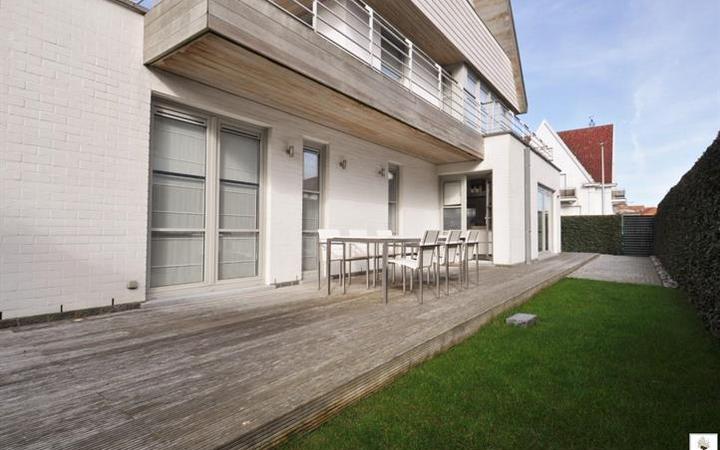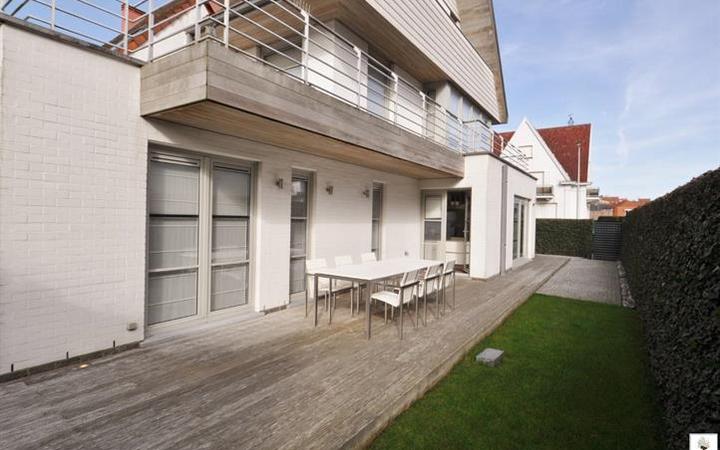 Modern tuinappartement in een kleine hedendaagse villa residentie, ideaal gelegen nabij het Casino en op slechts enkele passen van het Albertstrand. Samenstelling: inkom met vestiaire en toilet. Zonnige woon- en eetkamer, met gezellige gashaard, met grote vensterramen openend op grote terrassen en privatieve tuin. Moderne amerikaanse keuken voorzien van alle huishoudtoestellen en aansluitend praktische berging met aansluiting voor was- en droogkast. 3 volwaardige slaapkamers, alle uitgeven op terras en tuin en 2 praktische douchekamers. Privatieve kelder en 2 garageboxen in de residentie. Bezoek gaarne na afspraak op één van onze kantoren.