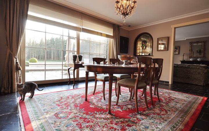 Indeling: Inkom met toilet en vestiaire. Ruime woonkamer met open haard (gas). Bureau. Eetkamer uitgevend op terras en tuin. Leefkeuken met Lacanche fornuis en ontbijthoek. Aparte berging. 1ste verdieping: 5 grote slaapkamers. Luxueuze badkamer. Dressing. Douchekamer. Tweede verdieping : 2 slaapkamers. Veel kelders waaronder wijnkelder.