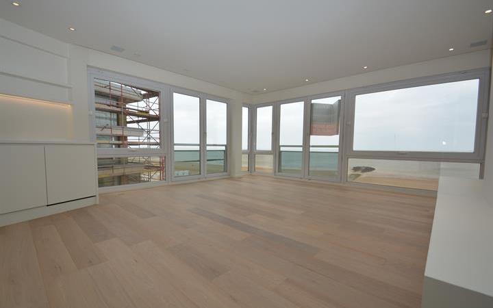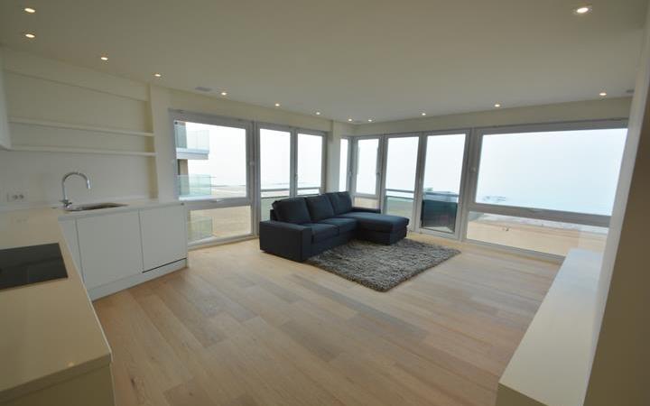 Volledig gerenoveerd hoekappartement - 6 hoog - op de zeedijk tussen Albert- en driehoeksplein. Samenstelling: inkom met vestiaire en toilet. Luchtige zit- en eetkamer met aantrekkelijk, panoramisch uitzicht op strand en zee. Praktische, open Amerikaanse keuken voorzien van alle hedendaagse huishoudtoestellen. 2 klassieke slaapkamers met ingebouwde kasten, elk met complete, verzorgde douchekamer. 3de slaapkamer. Mogelijkheid tot aankoop van een garage in de directe omgeving. Bezoek gaarne na afspraak via een van onze kantoren. Aanbevolen!