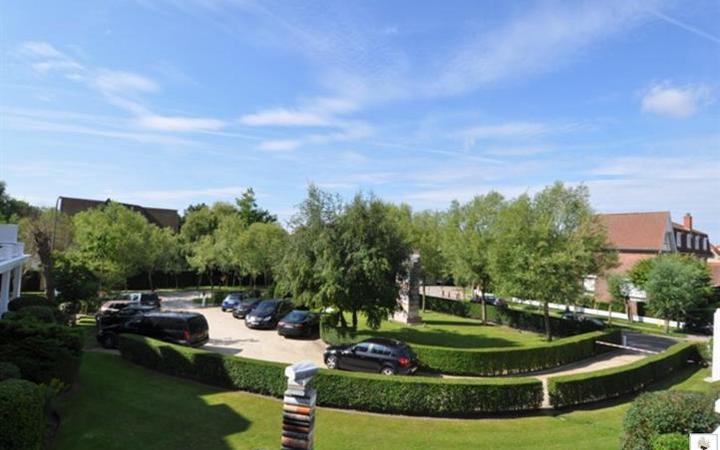 Uitzonderlijk groot hoekappartement, in de standingvolle villa-residentie "Garden House", gelegen op een AAA ligging, in het hartje van het oude Zoute: pal aan het Dominicanenkerkje en de betere winkels en op wandelafstand van de R.Z. Golf Club en de zeedijk. Samenstelling: ruime inkomhal met vestiaire en wc. Grote woon- en eetkamer uitgevend op groot zonneterras (ZW) met open zicht op groene omgeving. Ruime, ingerichte keuken met gezellige ontbijthoek en terrasje. Hoofdlaapkamer met aansluitende moderne badkamer. 2de en 3de volwaardige slaapkamers. 1 praktische douchekamer. Mogelijkheid tot aankoop van een afgesloten garage voor 1 auto in de benedenverdieping van de residentie. Grote outdoorparking. Bezoek gaarne na afspraak op één van onze kantoren. Warm aanbevolen!