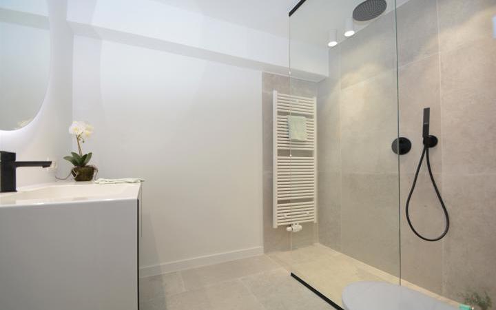 Indeling: inkomhal met vestiaire en toilet. Ruime, zonnige woon- en eetkamer. Open keuken voorzien van alle huishoudtoestellen. Berging voor wasmachine en droogkast. 2 slaapkamers voor dubbel bed, ingemaakte kasten en elk met hun eigen bad- en douchekamer. Beide slaapkamers geven uit op het terras achteraan. Warm aanbevolen!