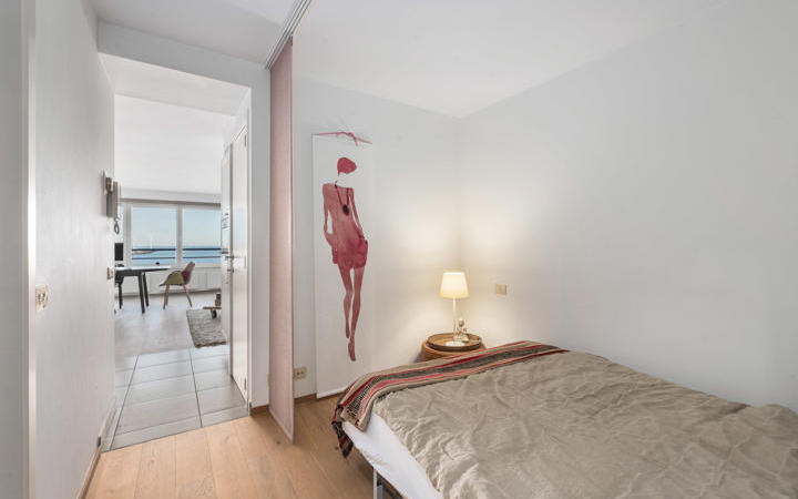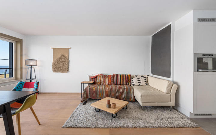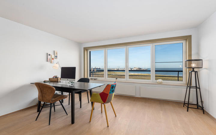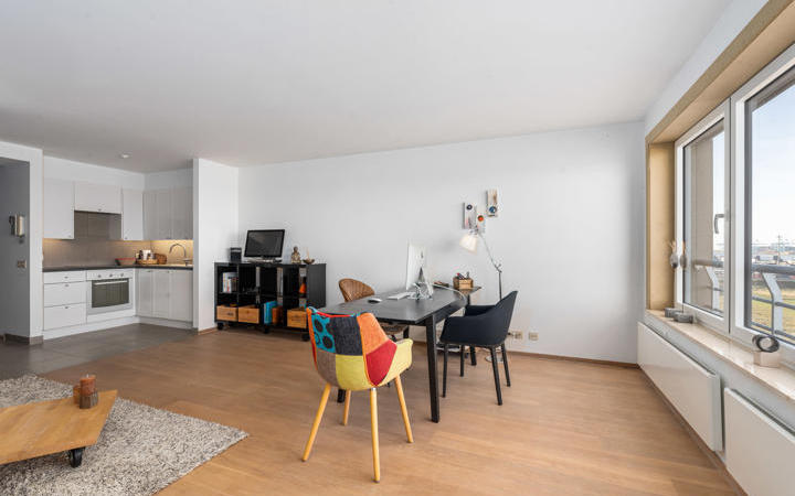 Ruime studio met frontaal zicht op zee, goed gelegen op de zevende verdieping in een recente residentie. Samenstelling: Woon- en eetkamer met prachtig zicht op de duinen, het strand en de zee. Open keuken, voorzien van alle toestellen. Badkamer met toilet. Slaaphoek. Berging/wasplaats. Kelder en gemeenschappelijke fietsenberging in het gebouw. Residentie "Edgar": Een aangename, moderne studio, voorzien van alle comfort. Bezoek graag na afspraak op onze kantoren.
