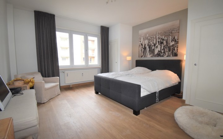 Gezellig 3-slaapkamer appartement met open zicht op de Kustlaan, in de nabijheid van het strand, de Minigolf en de winkels, hartje Zoute. Indeling: lichtrijke woon- en eetkamer met zuid gericht terras. Afzonderlijke, volledig geïnstalleerde keuken met berging voorzien van wasmachine en droogkast. Apart wc. Hoofdslaapkamer met aansluitende badkamer (bad, lavabo). 2de volwaardige slaapkamer. Afzonderlijke douchekamer. 3de slaapkamer. Privatieve kelder en gemeenschappelijke fietsenberging. Garagebox voor 1 wagen op het gelijkvloers in de residentie. Bezoek na afspraak in één van onze kantoren.