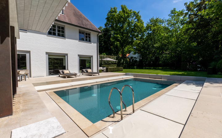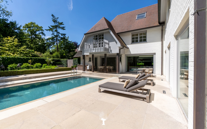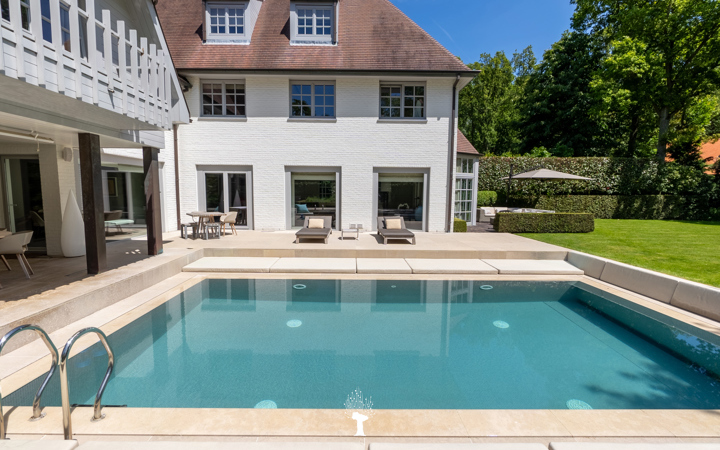 Uitzonderlijke villa gelegen op een absolute toplocatie in het Zoute. De eigendom situeert zich in een oase van rust, op een grond van 1.475 m², op slechts een boogscheut van de "Royal Zoute Golf Club", het strand en de zee. Indeling: Inkomhal met vestiaire en toilet. Zonnige, lichtrijke woonkamer met open haard en toegang tot het terras. Ruime open keuken met een overdekt terras. Een douchekamer, tweede toilet en een garage voor 2 auto's. Op de eerste verdieping: Master bedroom met dressing en zowel douche-als badkamer. 2 Ruime slaapkamers, elk met zijn separate dressing en badkamer. Op de zolderverdieping: volledig ingericht gastenverblijf en een opbergzolderruimte. Vierde slaapkamer met badkamer. Zonovergoten tuin in 2 delen. Grote terrassen, verwarmd zwembad. Totaal exclusief wooncomfort: 675m² bewoonbare oppervlakte, afgewerkt met luxematerialen. Kelderverdieping: technische ruimte, wasplaats, koele berging en wijnkelder. Voor bijkomende inlichtingen en bezoek, nodigen wij u uit op onze kantoren.