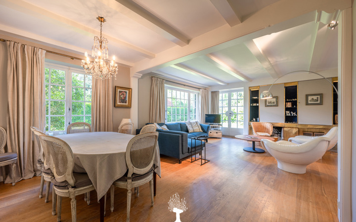 Karaktervolle koppelvilla genesteld in het hartje van het Zoute, dichtbij de minigolf en op nauwelijks enkele passen van het strand en de zee. Samenstelling: inkomhall met vestiaire en toilet. Aangename woon- en eetkamer uitgevend op zuidgerichte tuin en terras. Tweede salon. Volledig ingerichte keuken. 7 slaapkamers en 5 badkamers. Garage voor 1 wagen. Diverse autostaanplaatsen. Bezoek gaarne na afspraak op één van onze kantoren.