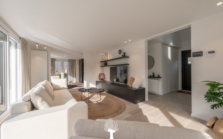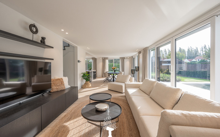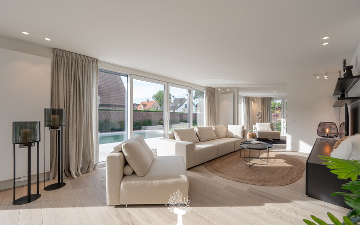 Aangename totaal gerenoveerde villa op een mooi perceel en goed gelegen in een residentiële wijk te Knokke. Indeling: Inkomhall met vestiaire en apart toilet. Zonnige woon - en eetkamer, openend een goed georiënteerde tuin en terras. Moderne, geïnstalleerde open keuken. Eerste verdieping: 3 volwaardige slaapkamers. Badkamer, douchekamer en apart toilet. Garage voor 1 wagen. Oplaadpunt voor elektrische wagen. Outdoorparking. Aangenaam en luxueus wooncomfort in een oase van heerlijke rust! Bezoek graag na afspraak via onze kantoren!