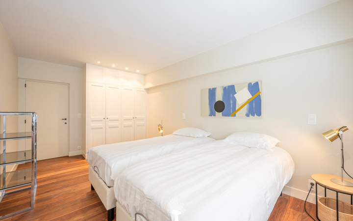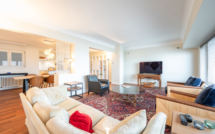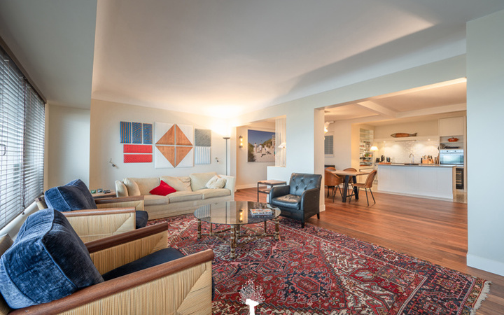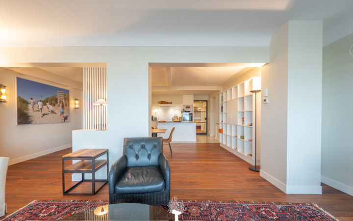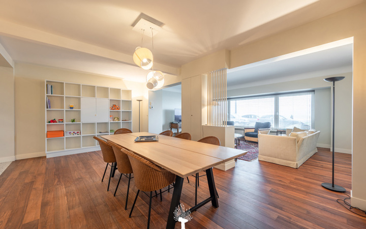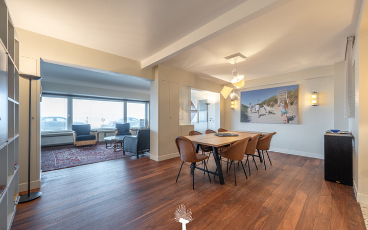 EXCLUSIEF TE KOOP - Uitzonderlijk appartement gelegen op de zeedijk van het Zoute, tussen het Albertplein en de wandeldijk. Indeling : Inkomhall met vestiaire en berging. Ruime, brede woonkamer met gezellige eethoek en zicht op het strand en de zee. Praktische open keuken voorzien van alle toestellen. Apart toilet. Master bedroom met douchekamer en apart toilet. 3 mooie slaapkamers voor dubbel bed. 1 badkamer en 1 douchekamer. Privé kelder. Mogelijkheid tot aankoop van een garage in de onmiddellijke omgeving van de residentie. De “Grand Large” : een appartement met een zee van ruimte en licht op de zeedijk, hartje Zoute. Bezoek gaarne na afspraak op één van onze kantoren.