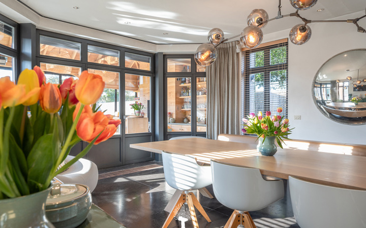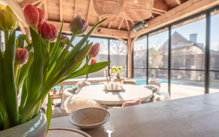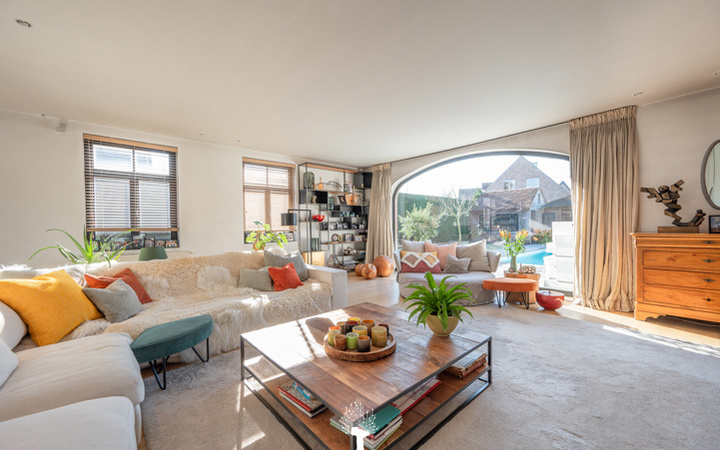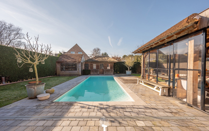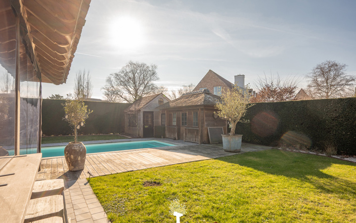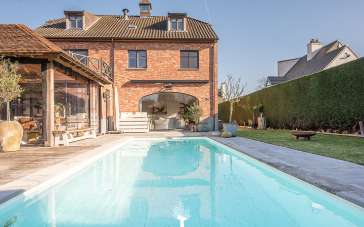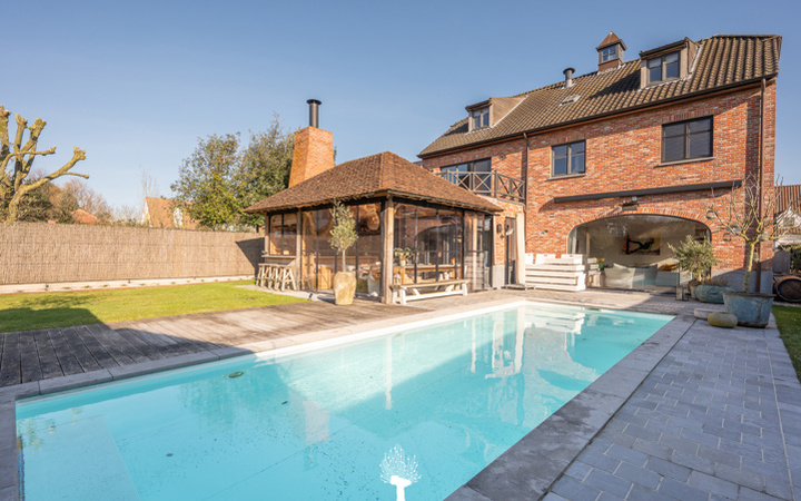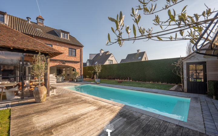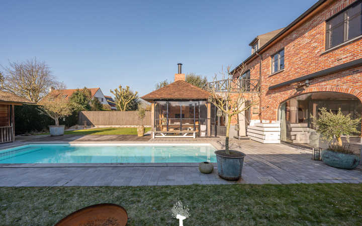Zeer ruime en luxueuze, alleenstaande villa in een residentiële omgeving. Indeling: inkom met vestiaire en gastentoilet. Zonnige woonkamer met grote raampartijen; en gezellige gashaard; openend op de zuidwest georiënteerde tuin met zwembad. Royaal geïnstalleerde keuken met uitzonderlijk groot keukeneiland en praktische bijkeuken met ingemaakte kasten, lavabo en aansluiting voor was- en droogkast. Aansluitend orangerie in massieve eik met gezellige open haard voor bbq. Kelder. Op de 1ste verdieping: 1ste ruime slaapkamer met ingemaakte kasten. Aparte douchekamer met inloopdouche, wc en lavabo. Master bedroom openend op terras. Eigen royale badkamer (ligbad, inloopdouche, lavabo, wc) en toegang tot hammam (mogelijkheid tot 5de slaapkamer). Grote dressing. 3de slaapkamer met ingemaakte kasten en aansluitende douchekamer. Apart wc. Op de 2de verdieping: 4de slaapkamer met ingemaakte kast. Aparte Douchekamer (inloopdouche, wc en lavabo). Aan de achterzijde van de tuin is er een polyvalente ruimte en poolhouse met vestiare en wc. Inpandige garage voor 2 wagens en outdoor parking. Buitenberging voor fietsen. Bezoek gaarne na afspraak via één van onze kantoren.