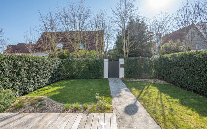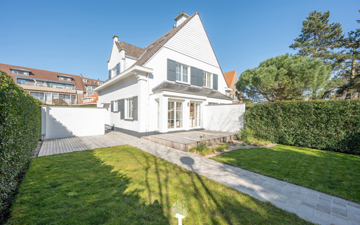 Unieke koppelvilla op een toplocatie in een paadje nabij het strand en het commerciële centrum van het Zoute. Samenstelling: inkomhall met gastentoilet. Ruime woon- en eetkamer met gashaard en toegang tot het terras en de tuin achteraan. Volledig ingerichte keuken met gezellige ontbijthoek. Op de verdieping: master bedroom en 2de slaapkamer. Praktische douchekamer. Bureauhoek. Op de tweede verdieping: 3e slaapkamer. Douchekamer. Garage voor 1 wagen en meerdere autostaanplaatsen. Praktische wasplaats. Graag bezoek na afspraak op één van onze kantoren.