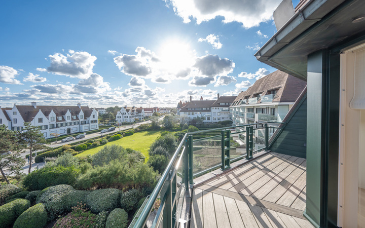 Uiterst zeldzaam appartement gelegen in een standingvolle residentie, pal aan zee, hartje Zoute en op slechts enkele passen van het Zwin en de "Royal Zoute Tennis Club". Samenstelling: inkomhall met vestiaire en toilet. Ruime woon- en eetkamer uitgevend op twee ruime terrassen (Z). Volledig ingerichte open keuken voorzien van alle huishoudapparaten. Masterbedroom met dressing en aansluitende complete badkamer (bad, douche, dubbele lavabo, toilet). 2de en 3de slaapkamer telkens voorzien van praktische douchekamer. Alle kamers geven uit op een terras. 2 privé kelders en gemeenschappelijke fietsenberging. Mogelijkheid tot aankoop van een dubbele garagebox in de residentie. Huisbewaarster: optimale veiligheid en service. Bezoek gaarne na afspraak via één van onze kantoren.
