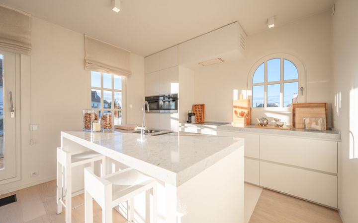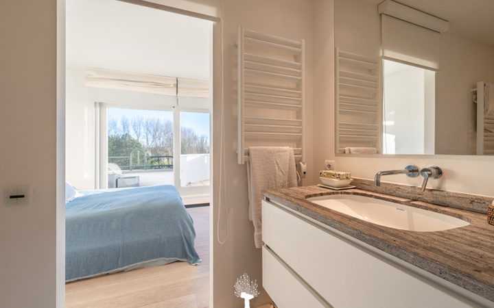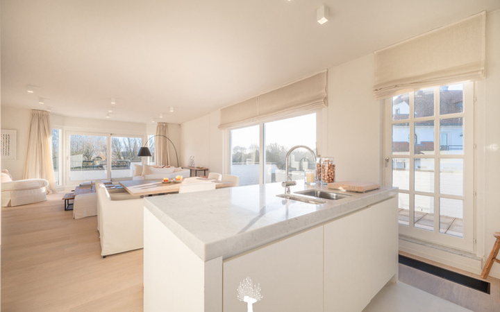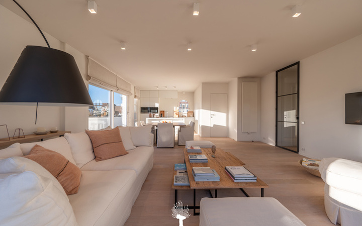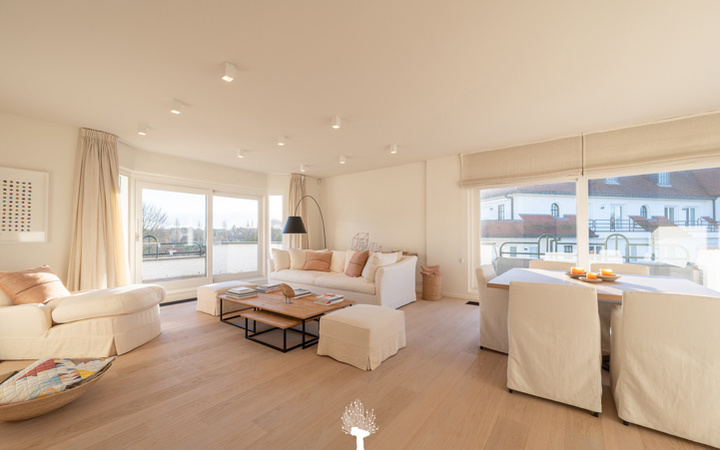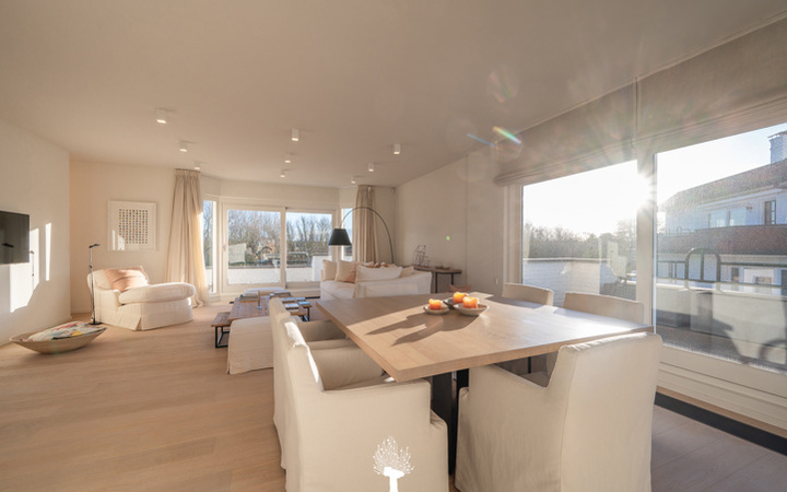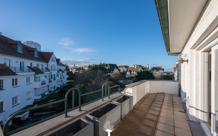 Prachtig hoekappartement met maar grote zonneterrassen.Indeling: directe toegang tot het appartement vanuit de lift. Inkom met vestiaire en gastentoilet. Ruime woon- en eetkamer met toegang tot twee ruime, zonnige terrassen met een uniek uitzicht op het domein. Moderne open keuken, uitgerust met toestellen van Miele en uitzicht op zee. Via de nachthal bereikt u 3 ruime slaapkamers, elk met een dubbel bed en ingebouwde kasten, en elk met toegang tot een van de terrassen. De masterbedroom heeft een eigen badkamer, voorzien van een ligbad, dubbele lavabo, inloopdouche en toilet. De twee andere slaapkamers delen een douchekamer met inloopdouche en lavabo. Er is een afzonderlijke grote bergruimte, waar onder andere de technische installaties en aansluitingen voor wasmachine/droogkast zich bevinden. Privatieve kelder. Gemeenschappelijke fietsenberging. Domeinopzichter: maximale veiligheid en service. Meerdere buitenstaanplaatsen voor bezoekers. Mogelijkheid tot aankoop van een autostaanplaats in de residentie. Bezoek gaarne na afspraak in één van onze kantoren.