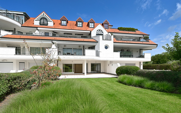 Zeldzaam tuinappartement in een standingvolle residentie in hartje Zoute, in het exclusieve domein "Tennis Gardens", een privé park van +/- 5 ha. Op een zucht van de zee en op wandelafstand van de "Royal Zoute Tennis Club". Het domein beschikt over een overdekt privé verwarmd zwembad uitsluitend toegankelijk voor de bewoners. Indeling: inkom, vestiaire en toilet. Ruime woon- en eetkamer schuifraam openend op groot zuidgericht terras en afgesloten tuin. Open keuken. Berging. 3 slaapkamers met telkens aansluitende bad- of douchekamer. Mogelijkheid tot aankoop van een garage in de kelderverdieping van de residentie. Gemeenschappelijke fietsenberging. Domeinopzichtster: maximale veiligheid et optimale service. De "Brighstone": totaal en luxueus wooncomfort op - zonder twijfel - een der mooiste locaties van het Zoute. Bezoek gaarne na afspraak via een van onze kantoren.