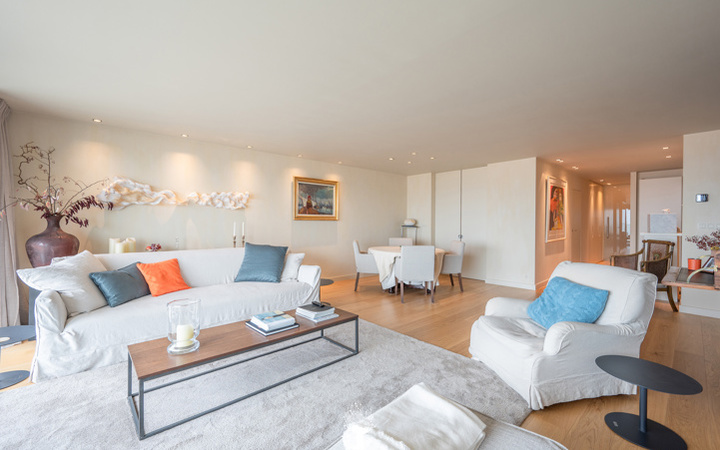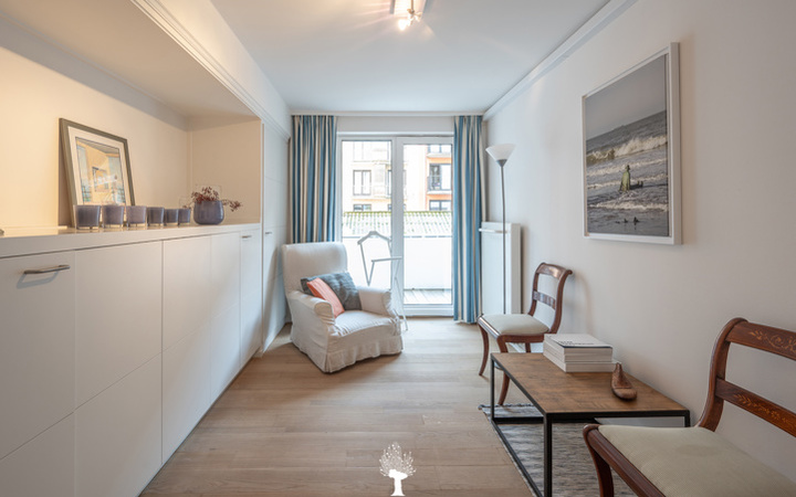 Prachtig appartement in een standingvolle, gerenoveerde, residentie op de zeedijk van het Zoute, ideaal gelegen tussen het Albertplein en de wandeldijk. Samenstelling: inkomhal met vestiaire en toilet. Ruime woon- en eetkamer met oninneembaar zicht op het strand en de zee. Moderne keuken voorzien van alle huishoudapparaten. Hoofdslaapkamer met dressing en luxueuze badkamer. 2de en 3de slaapkamer. Praktische douchekamer. Zuidgericht terras. Airco. Privatieve kelder en gemeenschappelijke fietsenberging. Mogelijkheid tot aankoop van 3 autostaanplaatsen in de residentie. De "Phenix": een goede investering op een gegeerde ligging in het Zoute...! Bezoek gaarne na afspraak op één van onze kantoren.