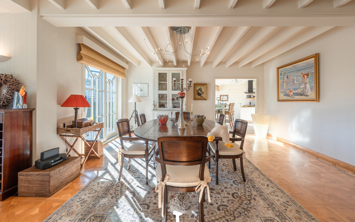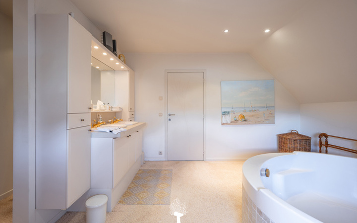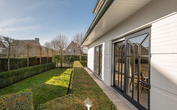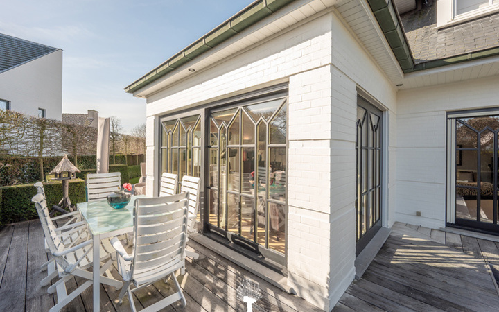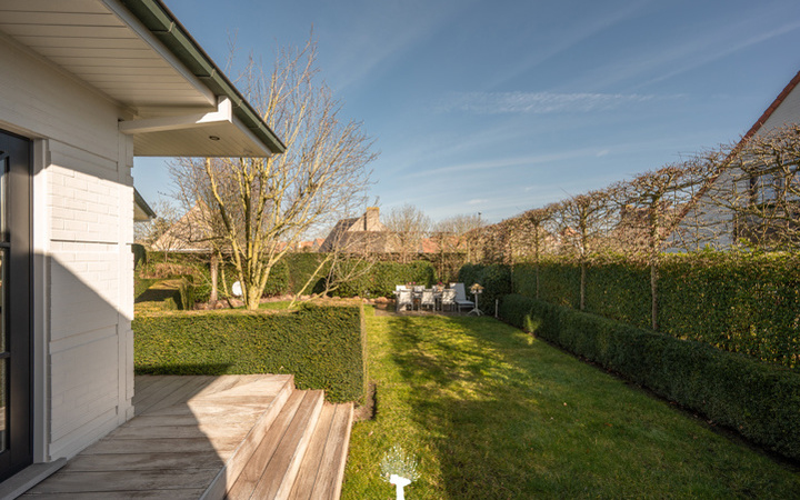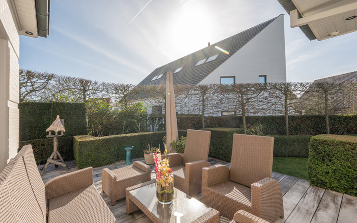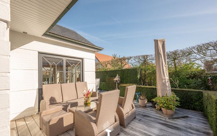 Aangename alleenstaande villa , fraai gelegen in een rustige villawijk aan de rand van het Zoute, op loopafstand van vele winkels. Samenstelling : Royale inkomhall met vestiaire en toilet. Apart bureel. Ruime woonkamer met gashaard. Eetkamer. Ingerichte keuken voorzien van alle moderne huishoudapparaten en gezellige eethoek, alles uitgevend op het terras en de tuin. Bijkeuken/wasplaats. Op de 1ste verdieping : 2 zéér ruime slaapkamers met veel lichtinval. Praktische douchekamer met 2 wastafels. Master bedroom met dressing en privatief terras. Badkamer met ligbad, dubbele lavabo, douche en toilet. Ruime zolder. Garage voor 2 wagens. Meerdere staanplaatsen voor de villa. Zeer degelijke afwerking. Bezoek gaarne na afspraak in één van onze kantoren.