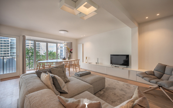 Prachtig appartement op een absolute toplocatie vlakbij het Albertplein en het strand. Samenstelling: Inkomhall met vestiaire en toilet. Gezellige woon- en eetkamer met schuiframen openend op zongericht terras. Moderne, open keuken met alle toestellen (Miele - uiterst luxueuse afwerkingsgraad). Hoofdslaapkamer met bijhorende badkamer, tweede en derde slaapkamer elk met bijhorende douchekamer. Totaal wooncomfort! Zeer luxueuze materialen. Bezoek gaarne na afspraak op onze kantoren. Warm Aanbevolen.