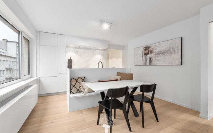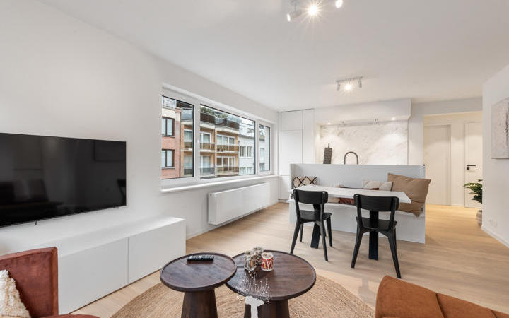 Recent appartement gelegen nabij het Rubensplein op wandelafstand van het strand. Indeling: inkom met vestiaire en gastentoilet. Open moderne, volledig geïnstalleerde keuken. Lichtrijke woon- en eetkamer. 2 slaapkamers. Douchekamer. Fietsenberging in de residentie. Bezoek en bijkomende informatie gaarne na afspraak via één van onze kantoren.