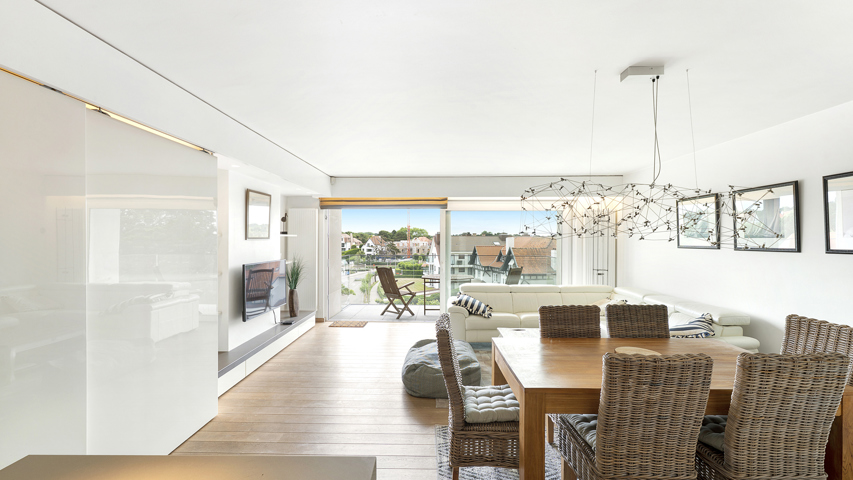 Lichtrijk appartement gelegen op de 3ᵉ verdieping van een standingvolle residentie op een gegeerde ligging in het hart van het Zoute, op slechts een steenworp van de zeedijk en de luxe winkels.Uitzonderlijke locatie, brede gevel, mooi terras en optimaal zonlicht. Indeling: De inkomhal met gastentoilet en een berging met aansluitingen voor was- en droogkast. Grote woon- en eetkamer openend op een aangenaam terras op het zuiden met prachtig, open uitzicht op de minigolf en de villa’s van het Zoute. Praktische, volledig ingerichte open keuken (toestellen Miele - Gaggenau). 3 goed ingerichte slaapkamers, waarvan 2 slaapkamers aan de achterzijde van de residentie met eigen bad- of douchekamer en toegang tot het 2de terras. Privékelder. Grondig geroveerde residentie: nieuwe lift, nieuwe terrassen, dakisolatie, nieuwe voorgevel,.... Een zeldzaam en uniek appartement. Mogelijkheid tot aankoop van een garage voor 2 wagens op enkele passen. Bezoek gaarne na afspraak via één van onze kantoren.