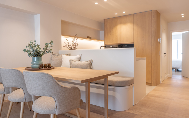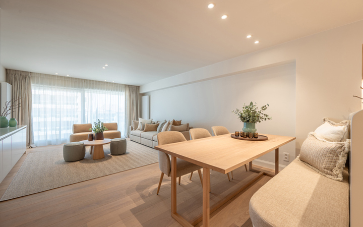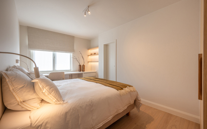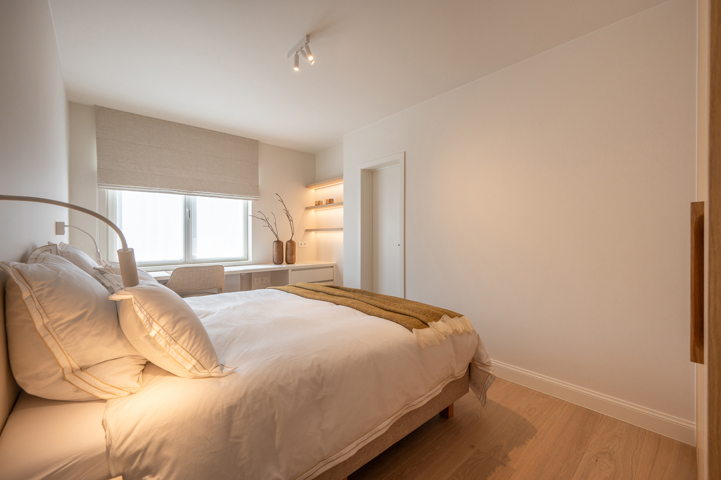 Stijlvol vernieuwd appartement met prachtig zeezicht gelegen in hartje Zoute, vlakbij de winkels en de minigolf. Indeling: inkom met vestiaire en apart toilet. Lichtrijke woonkamer met vensterpartijen uitgevend op mooi terras met prachtig zeezicht. Geïnstalleerde open keuken. Hoofdslaapkamer met terras en aanpalende douchekamer. 2de en 3de volwaardige slaapkamer. Praktische douchekamer. Veel maatkasten en duurzame afwerking. Gemeenschappelijk fietsenlokaal in de residentie. Mogelijkheid tot aankoop van 1 autostandplaats in de benedenverdieping van de residentie. Bezoek graag na afspraak op één van onze kantoren.